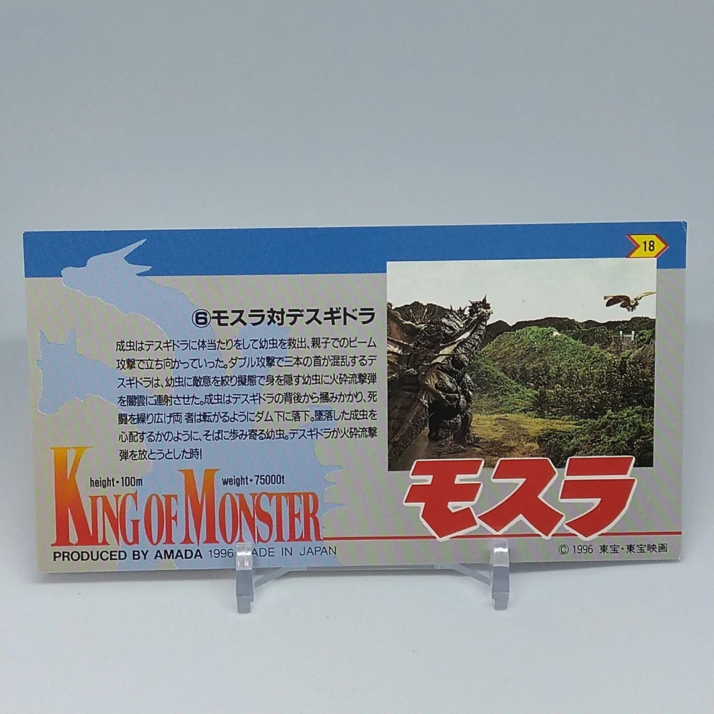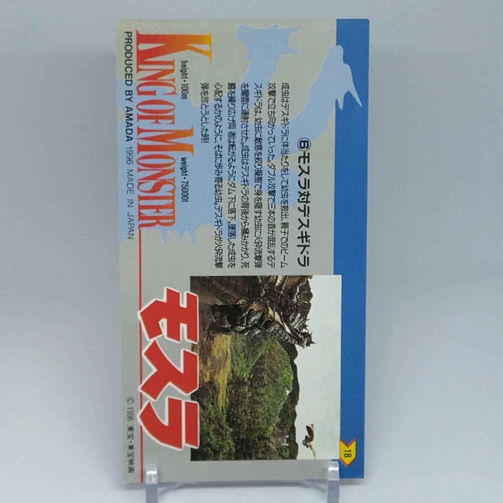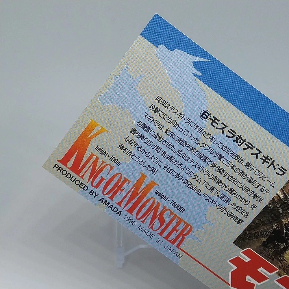 Mothra Desghidorah King of Monster Amada Wide Collection Trading Card No.18 1996 Description Please see the picture for the details of damages and dirt or ask us before your purchase. 100% Authentic or Money Back Guaranteed. (Do not worry you are protected by eBay and eBay Managed Payments) See the pictures for more details. If you have any question about the condition, accessories, or anything about the product, please feel free to message us. We are glad to answer all your concerns. Payment Same as ebay payment method. Shipping Economy shipping: Delivery time will be about 11 - 23 days. Standard shipping: Delivery time will be about 5 - 10 days. Expedited shipping: Delivery time will be about 1 - 4 days. Terms of Sale Money back guarantee within 30 days if returned by customer. We would not be able to accept your bid if you; 1) Don't have a PayPal account. 2) Have unpaid items reported. 3) Have a primary shipping address in countries you don't ship to. 4) Have reportedly violated eBay policies. 5) Have a Feedback score lower than the number you specify. International Buyers - Please Note: Import duties, taxes and charges are not included in the item price or shipping charges. These charges are the buyer's responsibility. Please check with your country's customs office to determine what these additional costs will be prior to bidding/buying. These charges are normally collected by the delivering freight (shipping) company or when you pick the item up - do not confuse them for additional shipping charges.