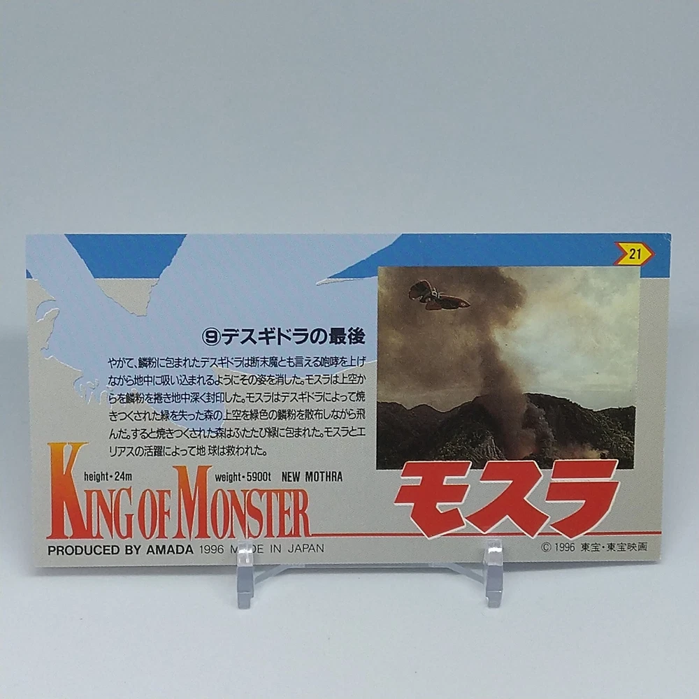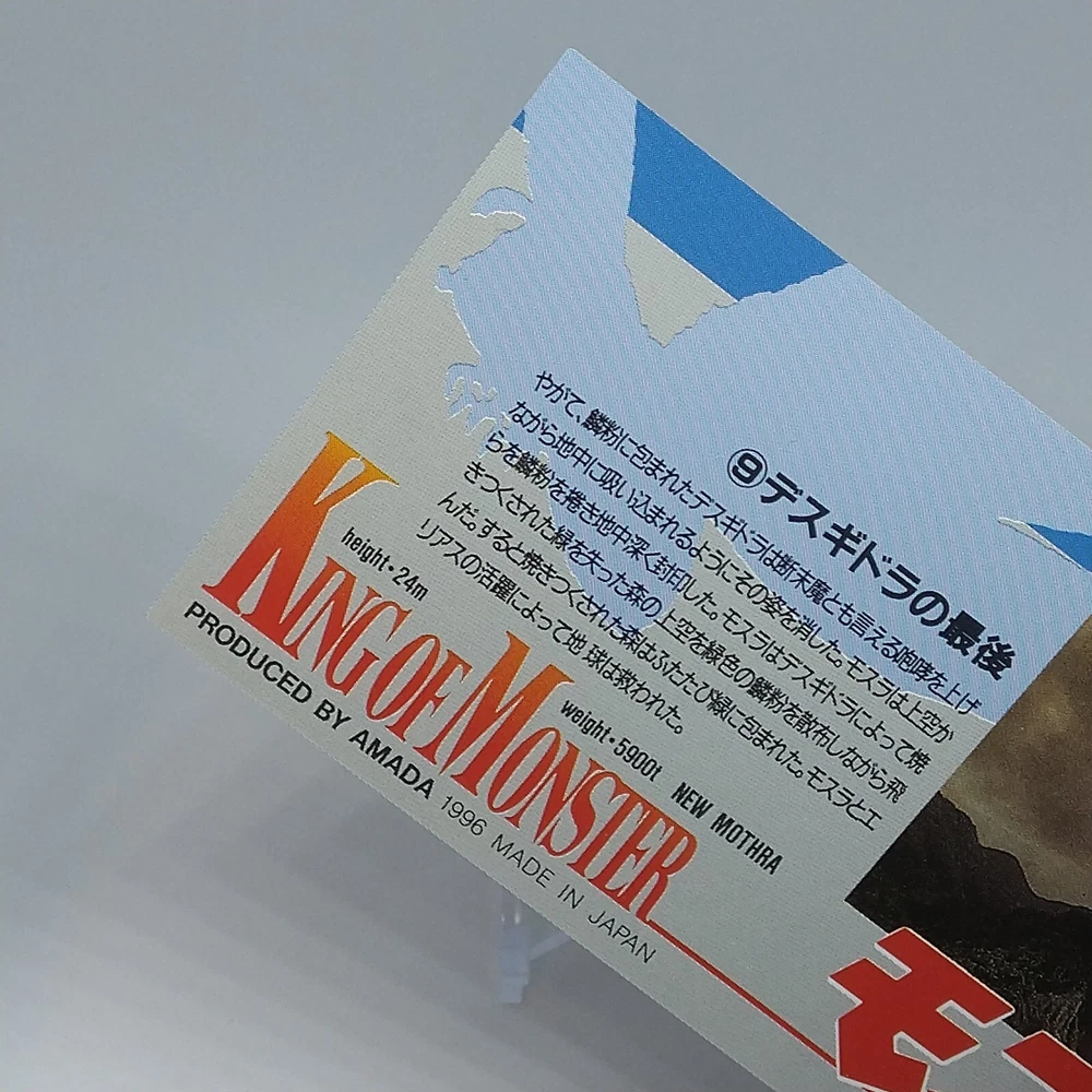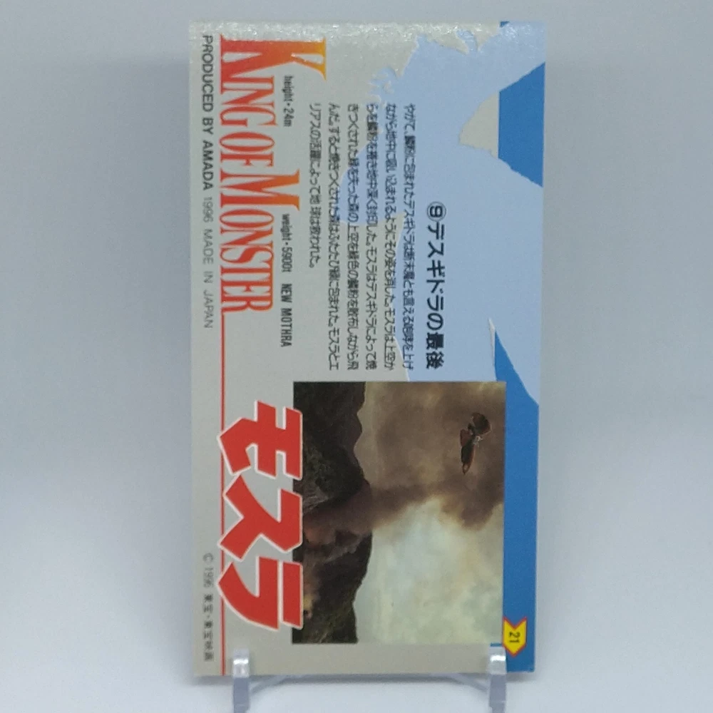 Mothra King of Monster Amada Wide Collection Trading Card No.21 Japanese 1996 Description Please see the picture for the details of damages and dirt or ask us before your purchase. 100% Authentic or Money Back Guaranteed. (Do not worry you are protected by eBay and eBay Managed Payments) See the pictures for more details. If you have any question about the condition, accessories, or anything about the product, please feel free to message us. We are glad to answer all your concerns. Payment Same as ebay payment method. Shipping Economy shipping: Delivery time will be about 11 - 23 days. Standard shipping: Delivery time will be about 5 - 10 days. Expedited shipping: Delivery time will be about 1 - 4 days. Terms of Sale Money back guarantee within 30 days if returned by customer. We would not be able to accept your bid if you; 1) Don't have a PayPal account. 2) Have unpaid items reported. 3) Have a primary shipping address in countries you don't ship to. 4) Have reportedly violated eBay policies. 5) Have a Feedback score lower than the number you specify. International Buyers - Please Note: Import duties, taxes and charges are not included in the item price or shipping charges. These charges are the buyer's responsibility. Please check with your country's customs office to determine what these additional costs will be prior to bidding/buying. These charges are normally collected by the delivering freight (shipping) company or when you pick the item up - do not confuse them for additional shipping charges.