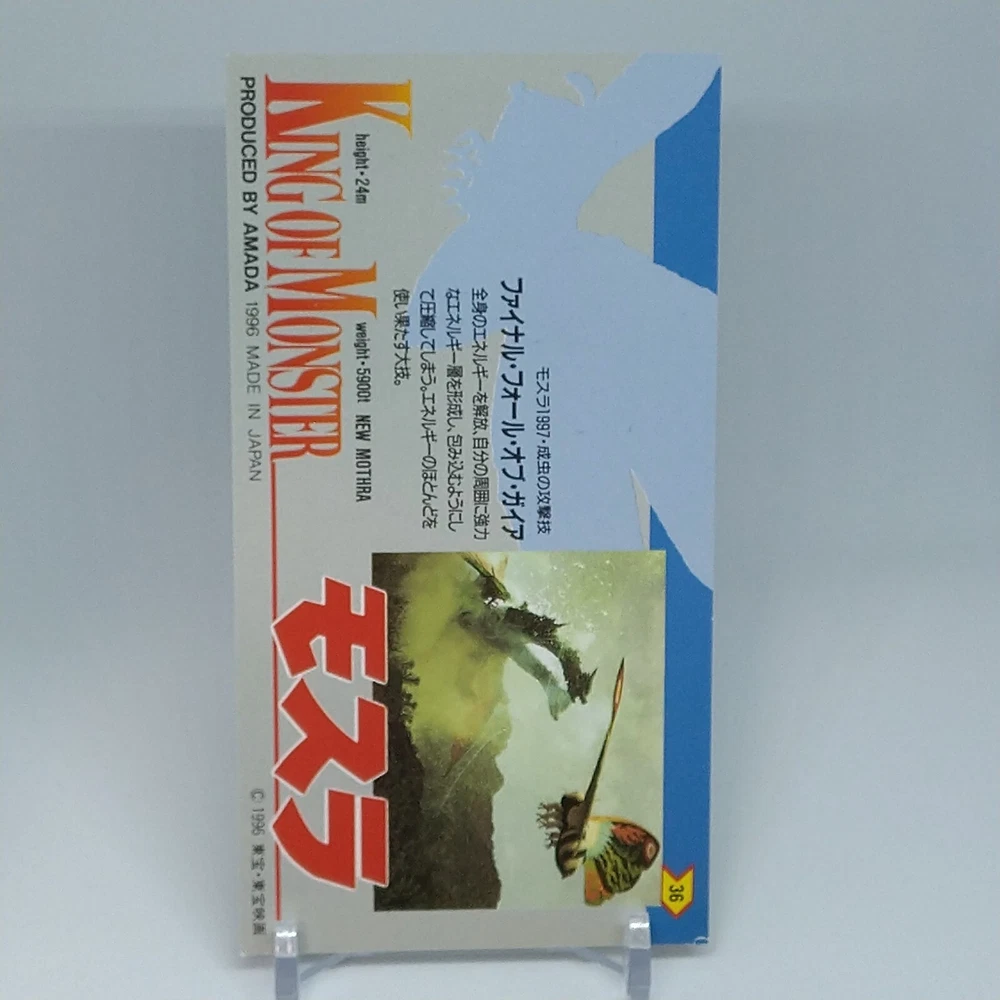 Mothra Desghidorah King of Monster Amada Wide Collection Trading Card No.36 1996 Description Please see the picture for the details of damages and dirt or ask us before your purchase. 100% Authentic or Money Back Guaranteed. (Do not worry you are protected by eBay and eBay Managed Payments) See the pictures for more details. If you have any question about the condition, accessories, or anything about the product, please feel free to message us. We are glad to answer all your concerns. Payment Same as ebay payment method. Shipping Economy shipping: Delivery time will be about 11 - 23 days. Standard shipping: Delivery time will be about 5 - 10 days. Expedited shipping: Delivery time will be about 1 - 4 days. Terms of Sale Money back guarantee within 30 days if returned by customer. We would not be able to accept your bid if you; 1) Don't have a PayPal account. 2) Have unpaid items reported. 3) Have a primary shipping address in countries you don't ship to. 4) Have reportedly violated eBay policies. 5) Have a Feedback score lower than the number you specify. International Buyers - Please Note: Import duties, taxes and charges are not included in the item price or shipping charges. These charges are the buyer's responsibility. Please check with your country's customs office to determine what these additional costs will be prior to bidding/buying. These charges are normally collected by the delivering freight (shipping) company or when you pick the item up - do not confuse them for additional shipping charges.