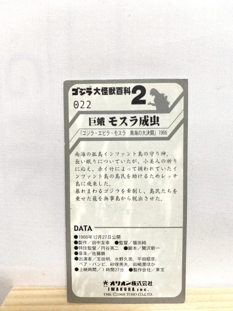 You can get a discount if you buy the products in bulk Please select multiple items you would like to purchase and send us a message. I would be happy if I could make a good deal with you. Send us the URL of the product you want. If you don't know, send us the product number. "a-ri-ga-to-u" I live in Tokyo, Japan. I sell Japanese original goods and character goods. Please feel free to say "Hi" if you find the item that you want. Description [Title] Mothra Godzilla Monster Encyclopedia 2 Card SFX TOHO TCG Japan Rare No.022 [Condition] Used."" Please judge with photos."" Shipping Economy Shipping [ No Tracking number , Japan Post Airmail] : Cost Free, About 2-3 weeks to arrive --Shipping-- Shipping from Japan Ship to Worldwide Airmail (No insurance & No tracking number, about 7-14 days to USA.) tracking number +4$ (Insurance & Tacking number, about 7-14 days to USA.) EMS +30$ (insurance &tracking number 3-7 days to USA.) International Buyers - Please Note: Import duties, taxes and charges are not included in the item price or shipping charges. These charges are the buyer's responsibility. Please check with your country's customs office to determine what these additional costs will be prior to bidding/buying. These charges are normally collected by the delivering freight (shipping) company or when you pick the item up - do not confuse them for additional shipping charges. We do not mark merchandise values below value or mark items as gifts - US and International government regulations prohibit such behavior.