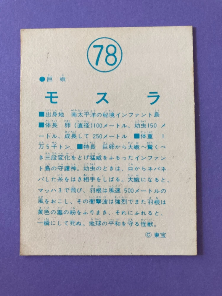 Mothra Godzilla No 78 TOHO Retro Japanese Vintage Giant Monster Card