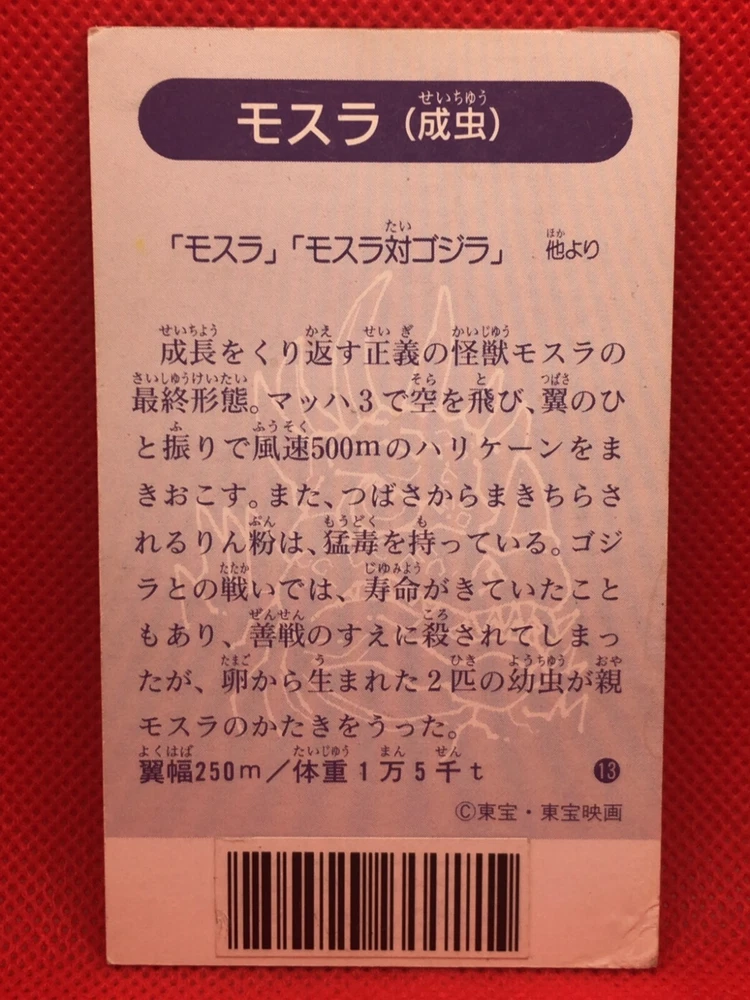 Mothra Godzilla Hurricane 4in Barcode Battler vintage TOHO card No.13