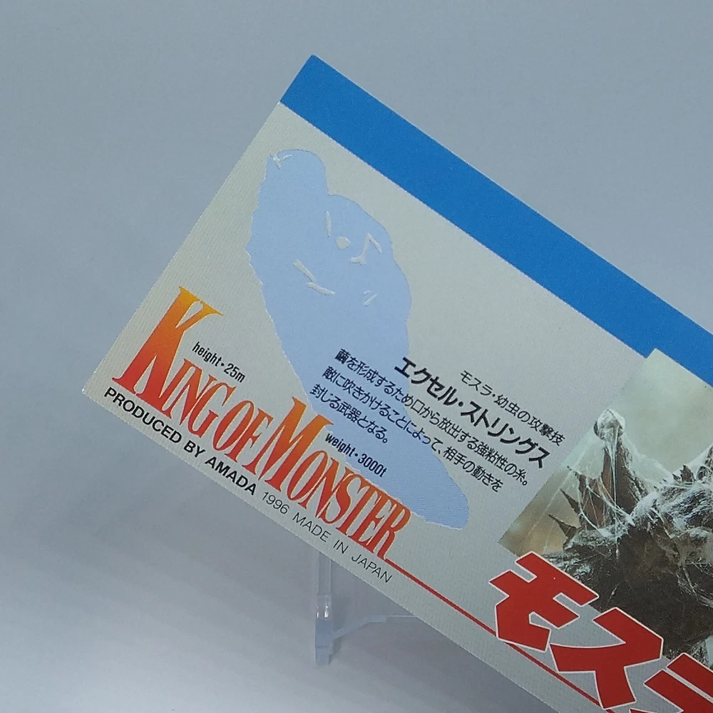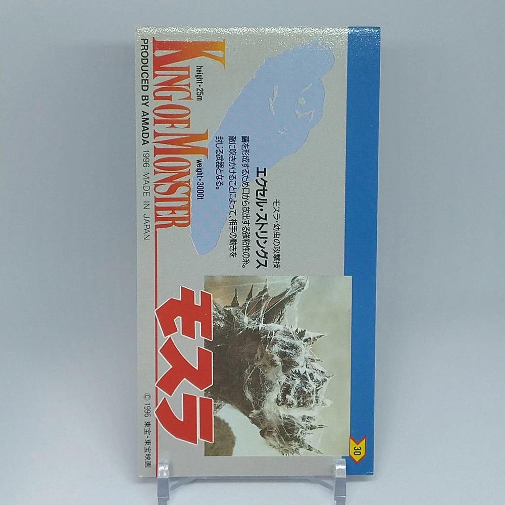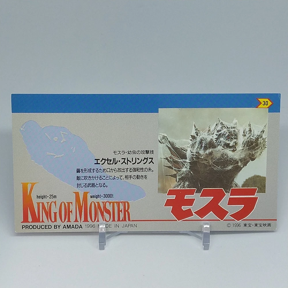 Mothra King of Monster Amada Wide Collection Trading Card No.30 Japanese 1996 Description Please see the picture for the details of damages and dirt or ask us before your purchase. 100% Authentic or Money Back Guaranteed. (Do not worry you are protected by eBay and eBay Managed Payments) See the pictures for more details. If you have any question about the condition, accessories, or anything about the product, please feel free to message us. We are glad to answer all your concerns. Payment Same as ebay payment method. Shipping Economy shipping: Delivery time will be about 11 - 23 days. Standard shipping: Delivery time will be about 5 - 10 days. Expedited shipping: Delivery time will be about 1 - 4 days. Terms of Sale Money back guarantee within 30 days if returned by customer. We would not be able to accept your bid if you; 1) Don't have a PayPal account. 2) Have unpaid items reported. 3) Have a primary shipping address in countries you don't ship to. 4) Have reportedly violated eBay policies. 5) Have a Feedback score lower than the number you specify. International Buyers - Please Note: Import duties, taxes and charges are not included in the item price or shipping charges. These charges are the buyer's responsibility. Please check with your country's customs office to determine what these additional costs will be prior to bidding/buying. These charges are normally collected by the delivering freight (shipping) company or when you pick the item up - do not confuse them for additional shipping charges.