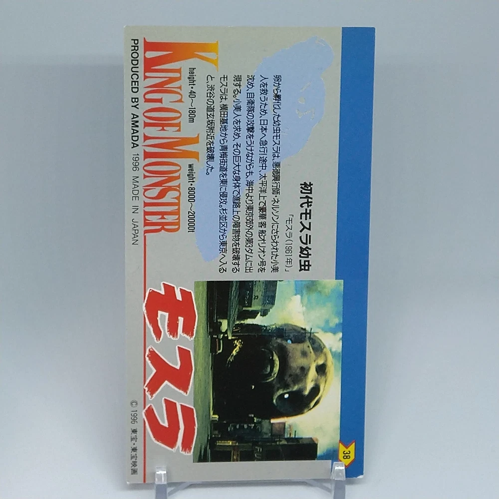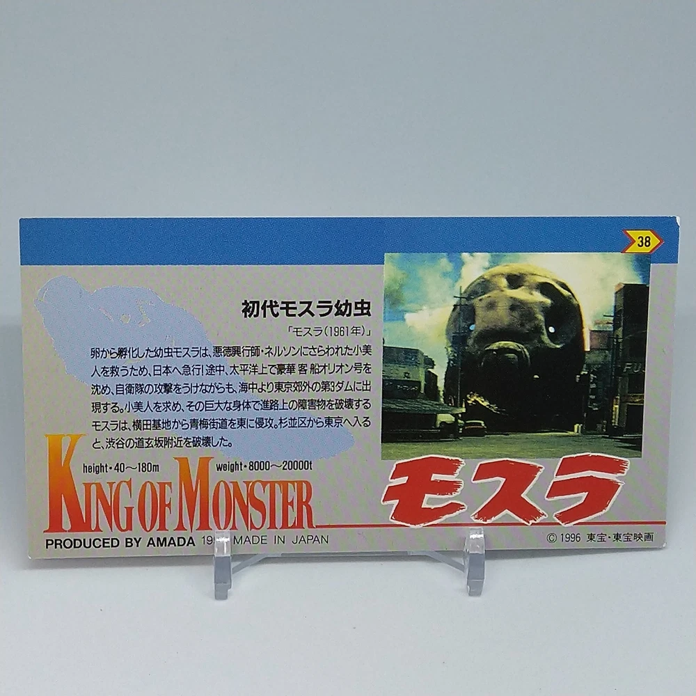 Mothra Larva King of Monster Amada Wide Collection Trading Card No.38 1996 Description Please see the picture for the details of damages and dirt or ask us before your purchase. 100% Authentic or Money Back Guaranteed. (Do not worry you are protected by eBay and eBay Managed Payments) See the pictures for more details. If you have any question about the condition, accessories, or anything about the product, please feel free to message us. We are glad to answer all your concerns. Payment Same as ebay payment method. Shipping Economy shipping: Delivery time will be about 11 - 23 days. Standard shipping: Delivery time will be about 5 - 10 days. Expedited shipping: Delivery time will be about 1 - 4 days. Terms of Sale Money back guarantee within 30 days if returned by customer. We would not be able to accept your bid if you; 1) Don't have a PayPal account. 2) Have unpaid items reported. 3) Have a primary shipping address in countries you don't ship to. 4) Have reportedly violated eBay policies. 5) Have a Feedback score lower than the number you specify. International Buyers - Please Note: Import duties, taxes and charges are not included in the item price or shipping charges. These charges are the buyer's responsibility. Please check with your country's customs office to determine what these additional costs will be prior to bidding/buying. These charges are normally collected by the delivering freight (shipping) company or when you pick the item up - do not confuse them for additional shipping charges.