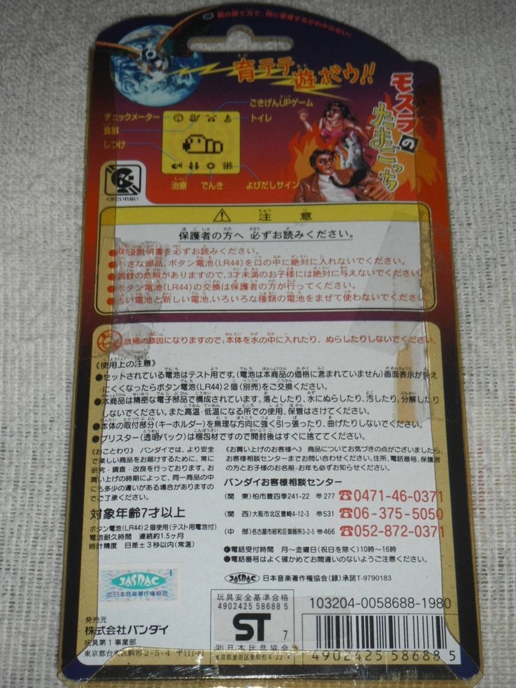 Item Title Mothra Tamagotchi Game Bandai Ken Godzilla Mogera King Ghidorah Gigan Jet Jaguar Payment Supports managed payments Please pay within 5 days after auction is finished. About Us We are located in Japan. It's our pleasure to make you happy by proposing our recommend item. If you have any questions or request about items, please feel free to ask us. International Buyers - Please Note: -Import duties, taxes, and charges are not included in the item price or shipping charges. These charges are the buyer's responsibility. -Please check with your country's customs office to determine what these additional costs will be prior to bidding/buying. -These charges are normally collected by the delivering freight (shipping) company or when you pick the item up - do not confuse them for additional shipping charges. -We do not mark merchandise values below value or mark items as - gifts - The US and International government regulations prohibit such behavior. Thank you for your understanding.