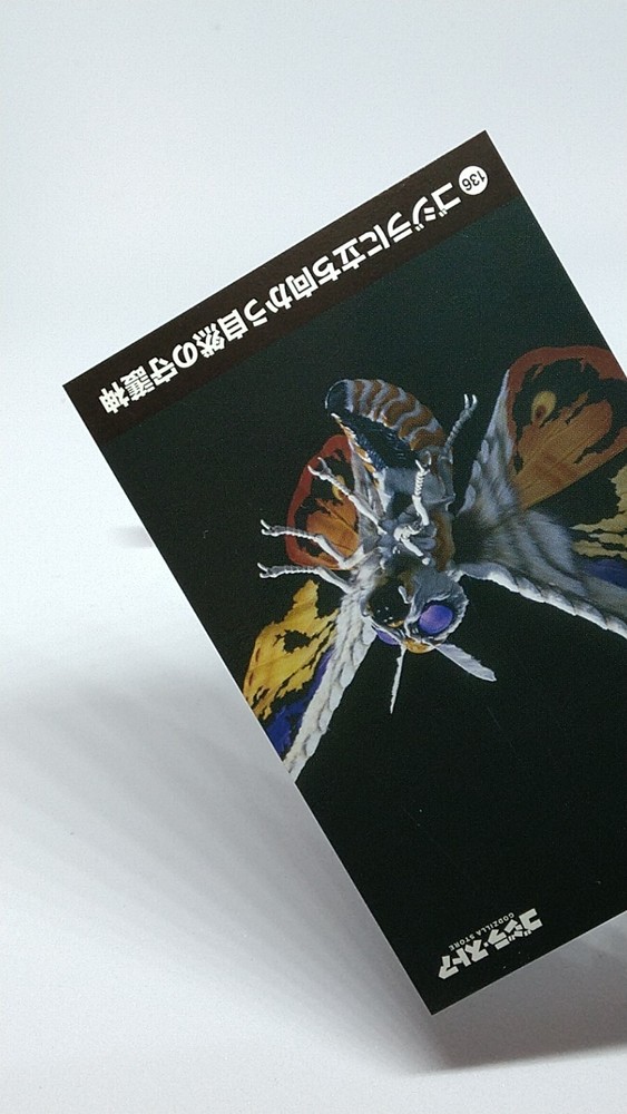 Mothra Toho Tokusatsu Collection Card No.136 Godzilla Store Tokyo Japanese Description Please see the picture for the details of damages and dirt or ask us before your purchase. 100% Authentic or Money Back Guaranteed. (Do not worry you are protected by eBay and eBay Managed Payments) See the pictures for more details. If you have any question about the condition, accessories, or anything about the product, please feel free to message us. We are glad to answer all your concerns. Payment Same as ebay payment method. Shipping Economy shipping: Delivery time will be about 11 - 23 days. Standard shipping: Delivery time will be about 5 - 10 days. Expedited shipping: Delivery time will be about 1 - 4 days. Terms of Sale Money back guarantee within 30 days if returned by customer. We would not be able to accept your bid if you; 1) Don't have a PayPal account. 2) Have unpaid items reported. 3) Have a primary shipping address in countries you don't ship to. 4) Have reportedly violated eBay policies. 5) Have a Feedback score lower than the number you specify. International Buyers - Please Note: Import duties, taxes and charges are not included in the item price or shipping charges. These charges are the buyer's responsibility. Please check with your country's customs office to determine what these additional costs will be prior to bidding/buying. These charges are normally collected by the delivering freight (shipping) company or when you pick the item up - do not confuse them for additional shipping charges.