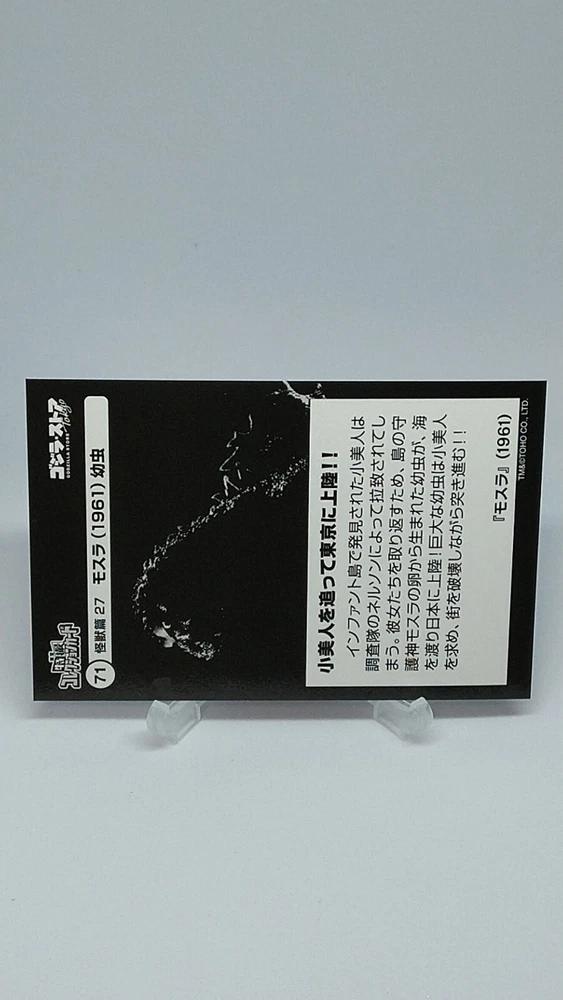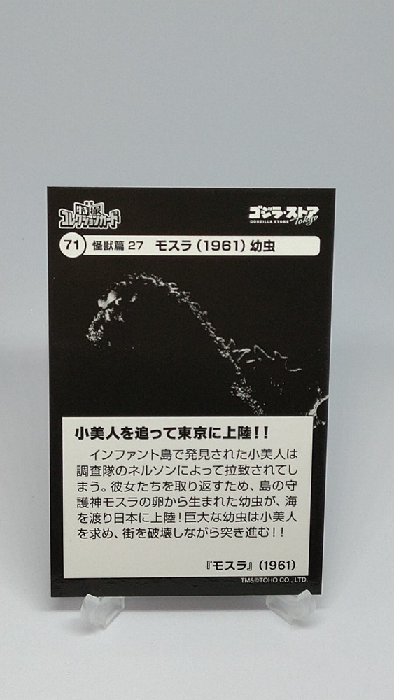Mothra Toho Tokusatsu Collection Card No.71 Godzilla Store Tokyo Japanese Description Please see the picture for the details of damages and dirt or ask us before your purchase. 100% Authentic or Money Back Guaranteed. (Do not worry you are protected by eBay and eBay Managed Payments) See the pictures for more details. If you have any question about the condition, accessories, or anything about the product, please feel free to message us. We are glad to answer all your concerns. Payment Same as ebay payment method. Shipping Economy shipping: Delivery time will be about 11 - 23 days. Standard shipping: Delivery time will be about 5 - 10 days. Expedited shipping: Delivery time will be about 1 - 4 days. Terms of Sale Money back guarantee within 30 days if returned by customer. We would not be able to accept your bid if you; 1) Don't have a PayPal account. 2) Have unpaid items reported. 3) Have a primary shipping address in countries you don't ship to. 4) Have reportedly violated eBay policies. 5) Have a Feedback score lower than the number you specify. International Buyers - Please Note: Import duties, taxes and charges are not included in the item price or shipping charges. These charges are the buyer's responsibility. Please check with your country's customs office to determine what these additional costs will be prior to bidding/buying. These charges are normally collected by the delivering freight (shipping) company or when you pick the item up - do not confuse them for additional shipping charges.