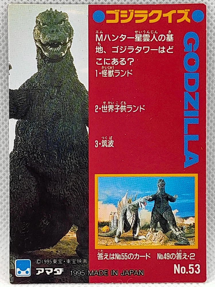 Mothra vs Godzilla GODZILLA Toho Movie Amada Trading Cards 1995 Made In Japan a
