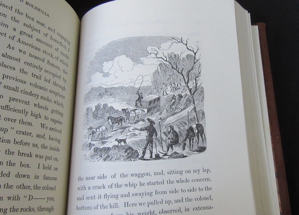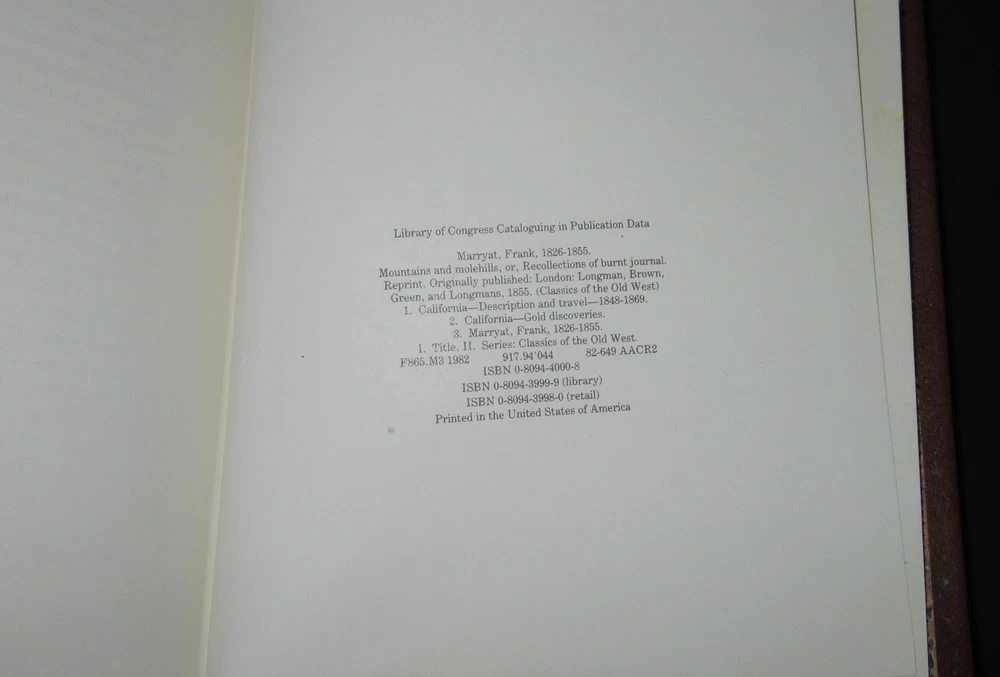WE live in MELBOURNE - and so do our books ! ie They are NOT coming from overseas !! (Classics of the Old West) M ountains and M olehills or Recollections of a Burnt Journal - by Frank Marryat - ISBN: 0809439980 Publisher: Time-Life Books, Alexandria, VA, USA Published: 1982 Binding: Tan Leather HARD cover 443 pages illustrated Condition : UN read condition! HERE in MELBOURNE ! A retired display copy as illustrated! Edition: FIRST of this EDITION: 1st printing 1982 TIGHT, UNOPENED SCARCE HARD COVER ~ IN MELBOURNE ... WHY do ebayers buy from US? Because you KNOW what you're getting. My close up photos are of the actual item!! Remains UN read - it was the display copy. It is Tight - neat, no inscriptions or marks within. Appears as in my photos - this is the exact copy !! A nicely preserved copy - superb! No discernible shelf wear to the embossed leather boards, the interior is tight and spotlessly clean with 443 pages with black and white and colour drawings by the author scattered throughout. This is the 1982 facsimile hard cover reprint published in this format in the USA by Time-Life Books. Incredibly SCARCE title - this is an UNread copy!! In original lovely brown leather bound HARD cover binding with ribbon page marker, with publisher's gold lettering & decoration to front panel and spine. Lovely brown & gilt leather binding with embossed long-horn, hatchet & six gun on cover, gilt on spine. Sleek gilt on all edges. There is an attached ribbon. Marbled endpapers with book synopsis tipped-in. Fine exlibris bookplate on inside endpaper. A lovely copy in near perfect condition. (Stored with 2018!) Measures approx. 22 X 15cms or 9ins x 6ins. SYNOPSIS .... Frank Marryat was an Englishman and tells of the many tough times he experienced heading to San Francisco & the gold fields. " Traveling with a pair of Englishmen and three bloodhounds, Marryat arrived through the Golden Gate to find San Francisco 'again in ashes,' following the disastrous fire of June 1850 ." Englishman Frank Marryat arrived in California in 1850 with a manservant and three hunting dogs, hoping to find inspiration for a travel memoir like the one he had previously written about Borneo. What emerged was one of the liveliest first hand accounts of gold rush California to come out of the era. Equipped with an outsider's perspective and a mischievous sense of humor, Marryat describes the rough-and-tumble San Francisco that was transforming before his eyes. Frank Marryat (1826-1855) left England for California via Panama with a manservant and three hunting dogs in 1850, hoping to find material for a book like his earlier Borneo. On his return to England in 1853, Marryat married and brought his bride back to California that same year. Yellow fever contracted on shipboard forced him to cut the trip short and return to England where he died two years later. Mountains and molehills (1855) is a sportsman-tourist's chronicle of California in the early 1850s: hunting, horse races, bear and bull fights. It also includes an Englishman's bemused comments on social life in San Francisco, Stockton, and the gold fields. * This wonderful title was originally published by Longman, Brown, Green, & Longmans, London, in 1855. It was bound without the advertisements at end. Born in 1826, Samuel Francis [Frank] Marryat was the son of the novelist Captain Frederick Marryat. He travelled to California in 1850, where he witnessed the San Francisco gold rush. His travel journal, sketches, and most of his possessions, were destroyed in a fire in May, 1851. Marryat contracted yellow fever on his trip home to England with his new bride, and died in 1855, shortly before the publication of this book. "A perceptive young Englishman describes his three years in and around San Francisco at the start of the Gold Rush, from 1850 to 1853. " ABOUT THE AUTHOR Frank Marryat (1826–1855) was a sailor, artist, and author. In 1850, he left England for California via Panama. In 1853, he returned to England, married, and left England again with his new bride to return to California, again via Panama. However, he contracted yellow fever and was forced to cut his trip short to return to England, where he died shortly after. Mountains and Molehills was published after his death. Very Informative read! REVIEW Kirkus review ... First published in 1855, Mountains and Molehills , by the son of the novelist Frederick Marryat, Frank Marryat, is a lively and detailed story of life in San Francisco and the California gold camps in the early 1850's. It tells also of the Isthmus route to the gold fields, of which there are relatively few records. Loved it! …. Excellent snapshot of early San Francisco & gold mining times. " A tale that is part Lady Isabella Bird, part Mark Twain, and part the traveling Charles Dickens." — Craig McCroskey, sales representative, Book Travelers West Author gives an excellent window into the past. …… You read about how things were, what people were like, the area etc. For example, his thoughts about the redwood trees being an inexhaustible resource. Yet, being familiar with the present day area we all know there are no redwoods or grizzlies in the bay area. Super window into history. Another good classic book from Time Life. ……. This is the ninth Classics Of The Old West I have bought, read and reviewed. All 4 or 5 stars. Mountains and Molehills was written by Englishman Frank Marryat after one of San Fransisco's fires destroyed his journal and shortly before his death from complications from an earlier bout of Yellow Fever. He was young and died at 29 after a life of severe hard luck, trying to make a living in California a few years after gold was discovered. There was 3 ways to get to California. Around the Horn, stage coach across America and through Panama( no canal yet) to ship. Unfortunately he choose passing through the mosquito, fever, disease, mud, and torrential rain land of Panama. We see many passengers getting sick and dyin