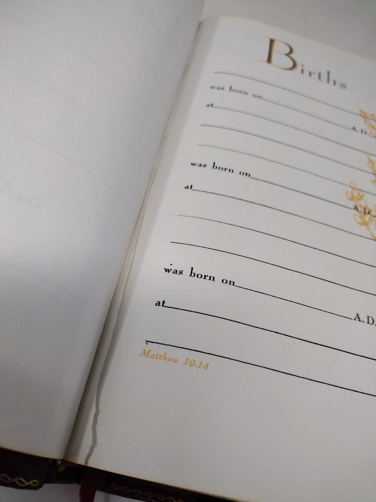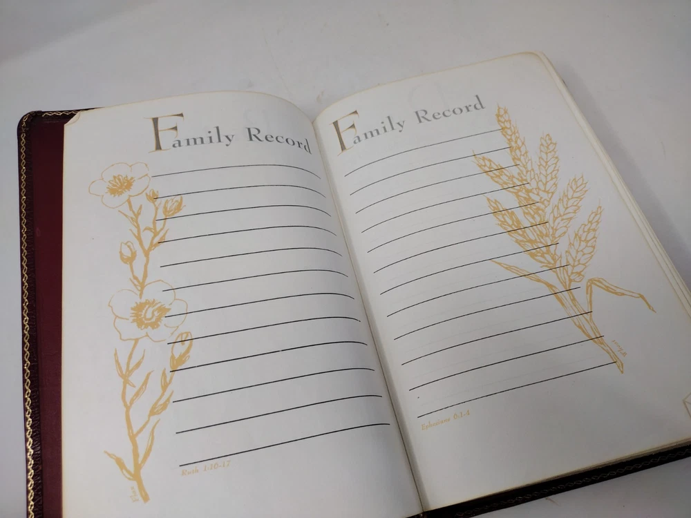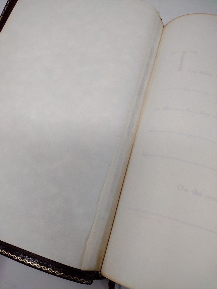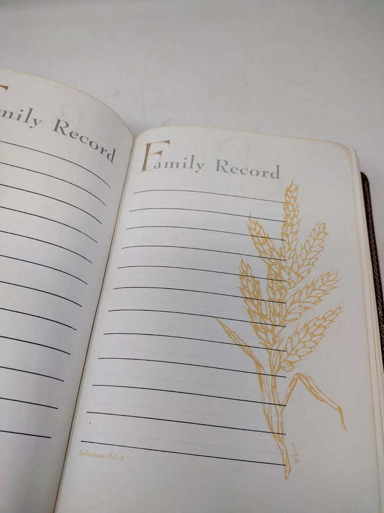does have one inscription, some underlining and minor shelf wear, a couple of the first pages are torn, not actually part of the Bible