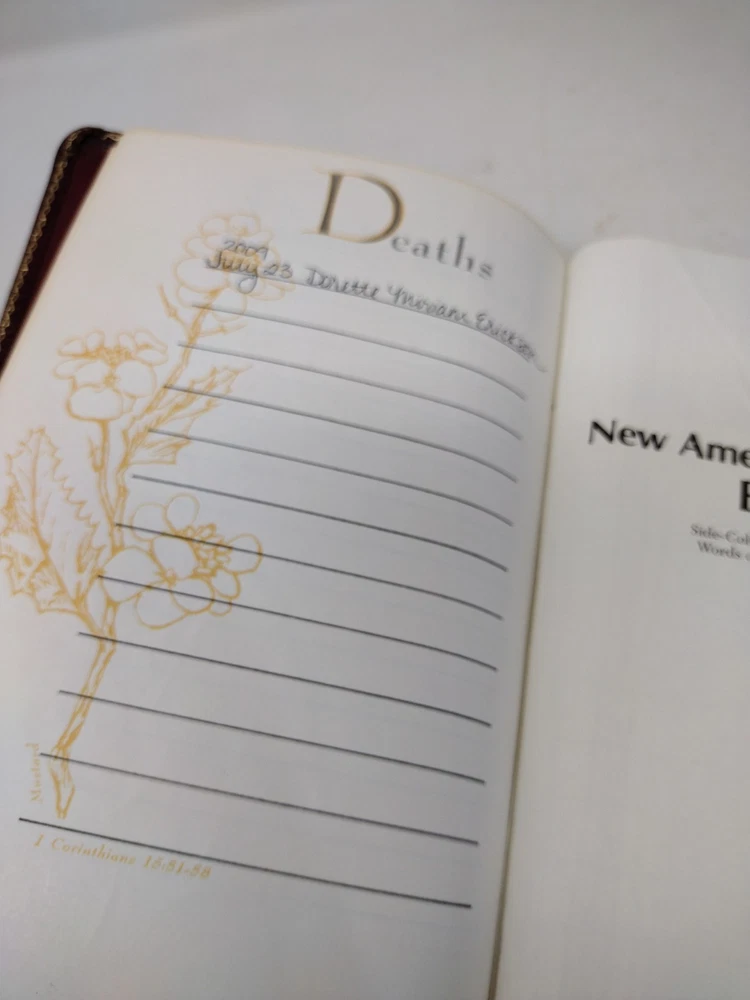 does have one inscription, some underlining and minor shelf wear, a couple of the first pages are torn, not actually part of the Bible...