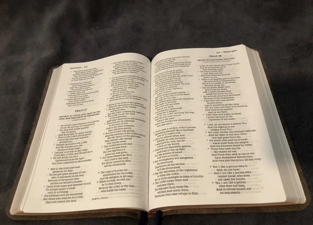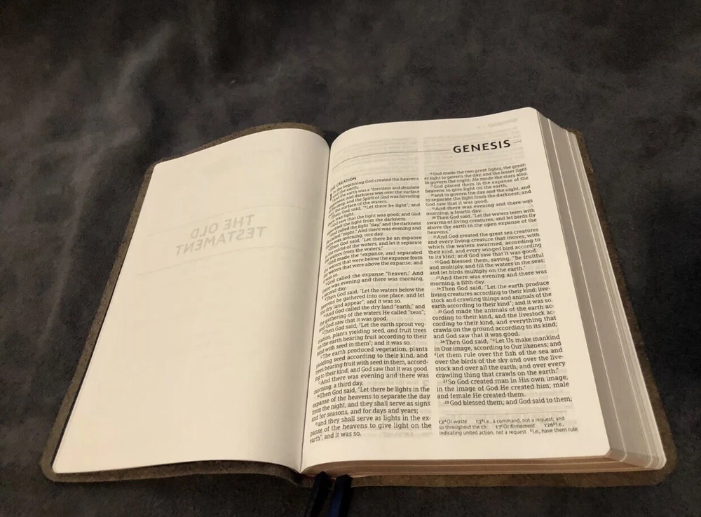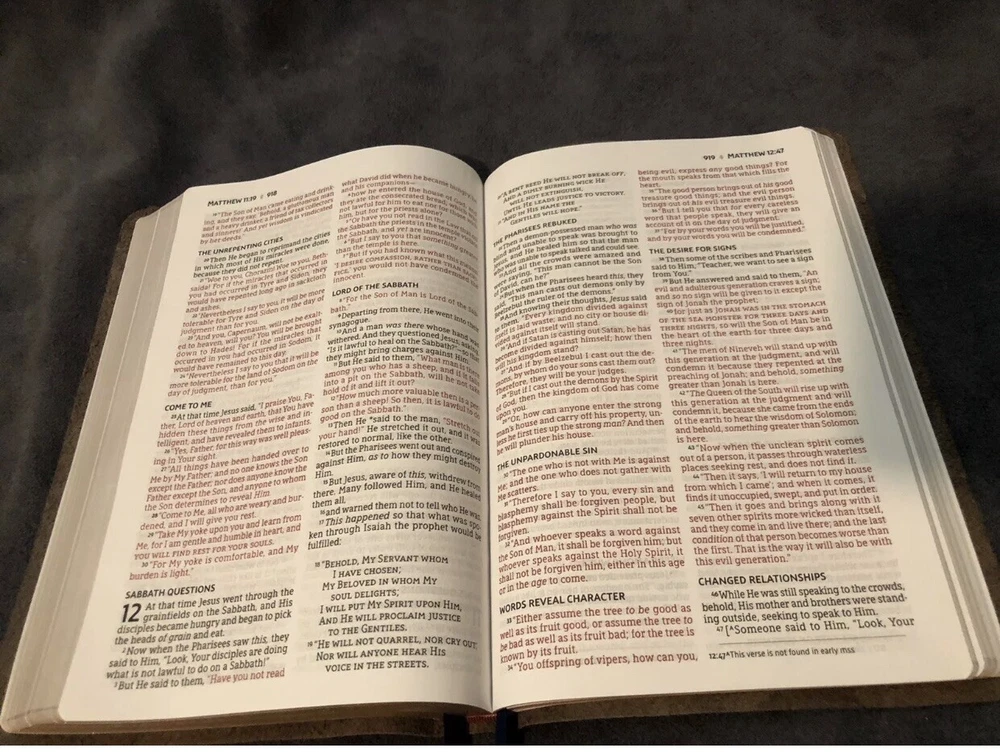 This Bible is available in many colors! Please send me a message if you are interested. Also if you need a re-bind on your Bible/book I can do that as well. I try to be very affordable.) Shipped with USPS Media Mail. Comes with genuine cowhide leather, the thickness of leather is 4 oz. the leather is very soft and durable, ribs on spine for elegant look, 2 ribbons, this Bible has no markings or highlights whatsoever it has never been used plz examine pics carefully before purchasing and feel free to ask any questions, I do my best to respond quickly and also be sure to check out the other bibles that I have for sale, and if you want a certain Bible rebound let me know I can do that too, God bless.