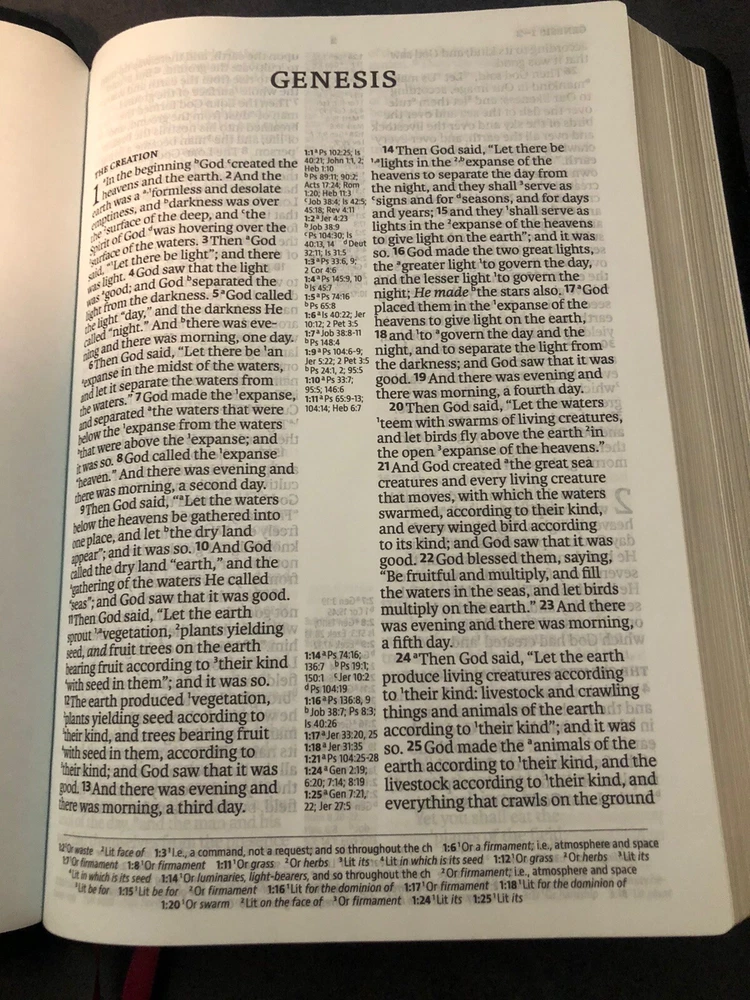 The shipping was a little confusing, it was bouncing around between post offices in eastern nj. Packaging was a little damaged but the Bible was ok. The Bible is as described, very beautifully done. The Bible is truly a value to me and a great addition to my collection to further my studies.