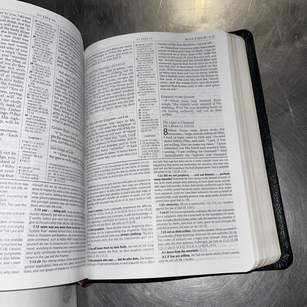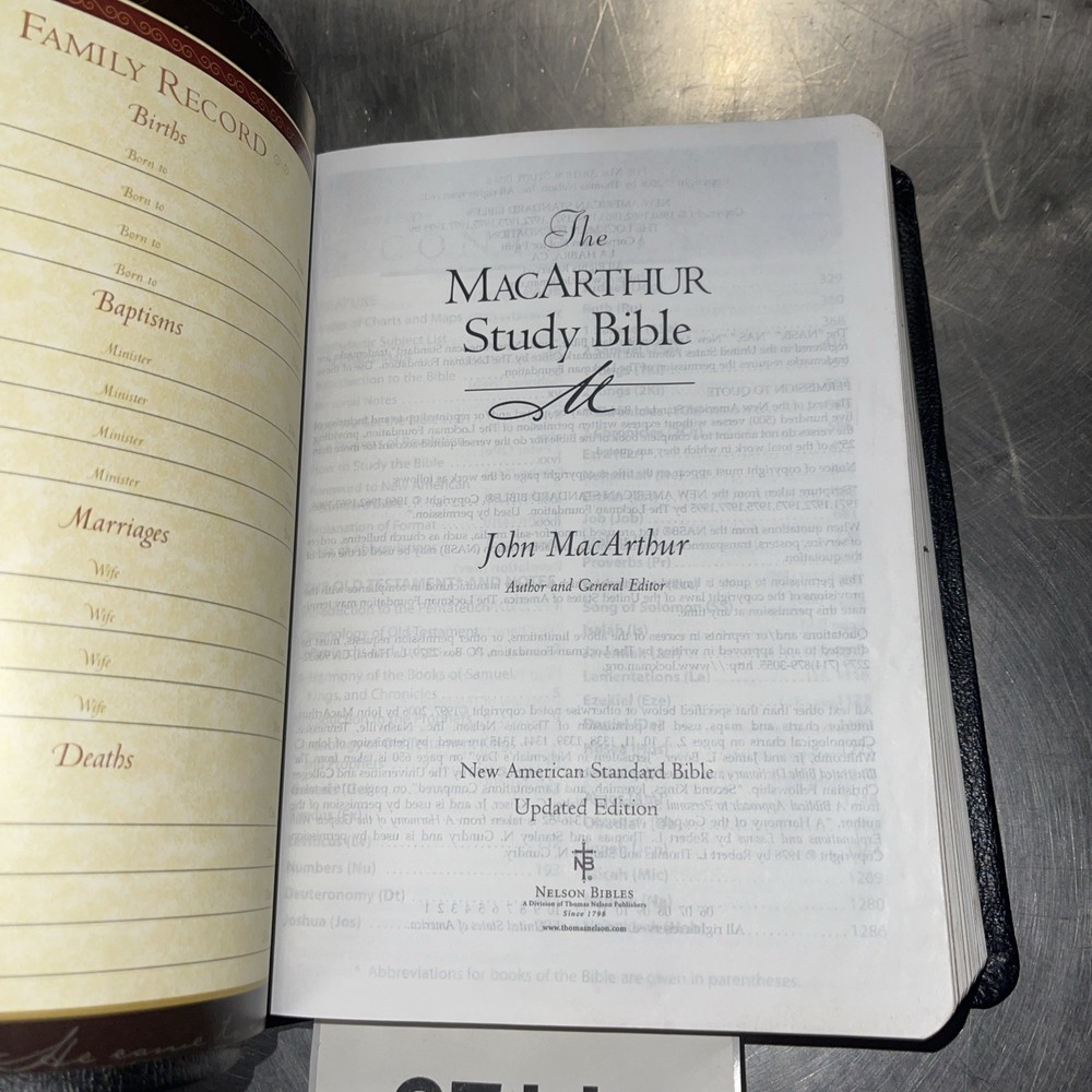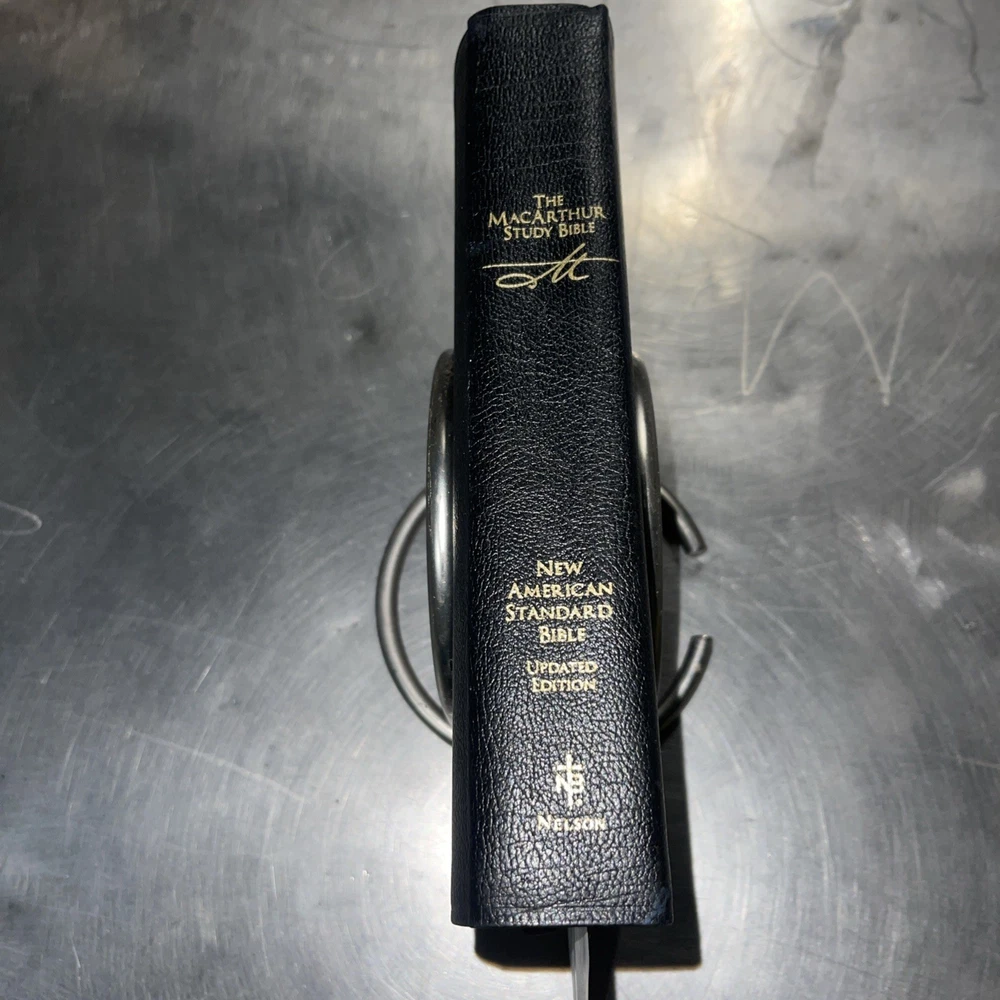 This is a black genuine leather NASB MacArthur Study Bible, updated edition. It has 2208 pages and measures 7.25 inches in length, 9.75 inches in height, and 2 inches in width. The book is written in English and published by Nelson Incorporated, Thomas. The intended audience for this book includes young adults, ages 9-12, and adults. The book is nonfiction and has a genre of Bibles. The book title is "Nasb Macarthur Study Bibles" and the author is John MacArthur. The book is leather bound and has features such as a topical index, concordance, and maps. The book is in excellent condition and is a great resource for anyone looking to study the Bible.
