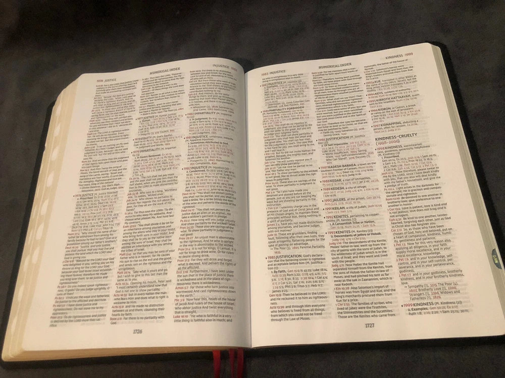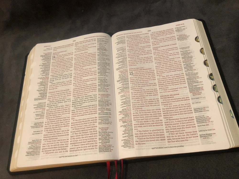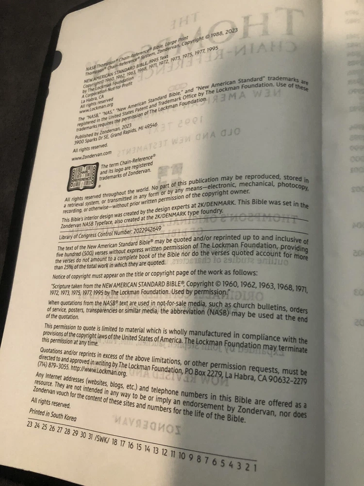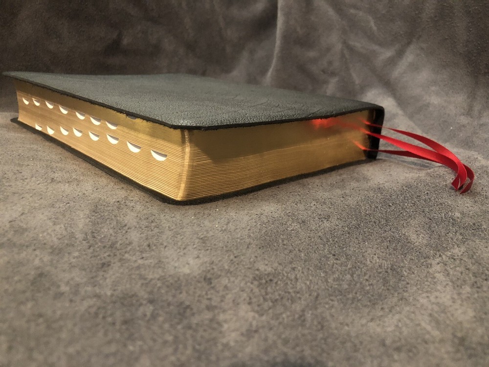 Item was as described, no marks or highlights in the txt which is what I wanted. He does great quality work on rebinding the Bible. I was searching for a NASB 95 life application Bible, but they are no longer in print and not many out there that doesn’t have mark free txt. Seller is up front regarding shipping. Bible was neatly packed. For what I was looking for this was a great value. Keep doing the Lords work!