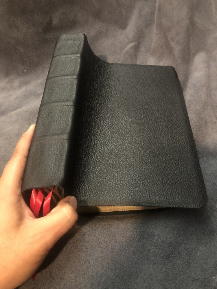 Shipped with USPS Media Mail. Comes with genuine cowhide leather, the thickness of leather is 4 oz. the leather is very durable, ribs on spine for elegant look, 2 ribbons, this Bible has no markings or highlights whatsoever it has never been used plz examine pics carefully before purchasing and feel free to ask any questions, I do my best to respond quickly and also be sure to check out the other bibles that I have for sale, and if you want a certain Bible rebound let me know I can do that too, God bless.