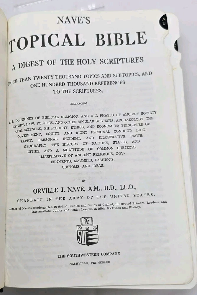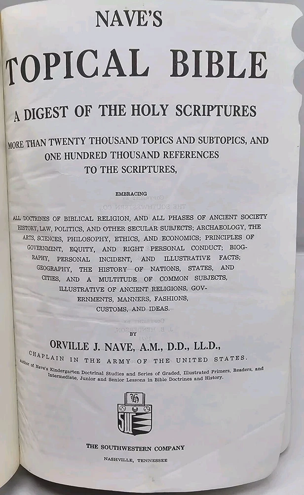 This is a vintage Bible reference and encyclopedia published in 1962 titled Nave's Topical Bible. Vintage used book is in acceptable condition with heavy wear from age and use....