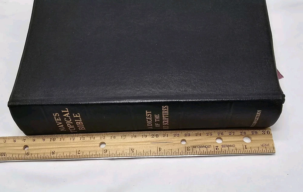 This is a vintage Bible reference and encyclopedia published in 1962 titled Nave's Topical Bible. Vintage used book is in acceptable condition with heavy wear from age and use.
