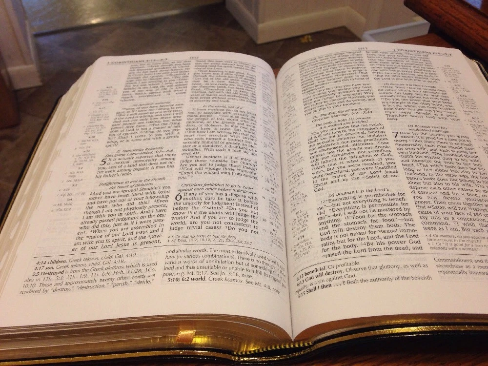 New international Version (1984 text) ~Black Genuine Leather~ ~Text size: 9 point (medium)~ ~Note size: 8 point (medium)~ ~Words of Christ in RED~ ~Smyth Sewn (Longer lasting binding)~ ~Thumb-Indexed~ ~Dimensions: 9.5 x 6.5 x 1.5 inches ~ Dear Valued Customer! Feel free to ask any questions you have. I try to answer questions within 24 hours. (Often within 1 hour). Explanation of shipping methods: Standard - media mail. Usually takes 2-3 weeks. (if you live in Hawaii or Alaska, expect 4-6 weeks) Expedited - (about $5-$10 more) - priority mail. Usually takes 2-3 days...4 at the most. If you have questions about shipping, please ask. I will be glad to explain it. International customers - If you would like to combine shipping and save lots of money when purchasing several items - message me BEFORE you purchase the items. I cannot combine shipping after the purchase has been made. I offer hassle free returns. If for any reason you are not satisfied with your purchase, you may return the item for a refund. If the item is not as described or was damaged in shipping, I will pay all shipping costs. If you have changed your mind about the purchase, (you just didn't like it/changed your mind about the purchase) I will still issue a refund, but I can not pay for the return shipping or the cost of shipping it initially. Please buy responsibly :) And of course, if you have any concerns with your purchase, please reach out to me and I will try to do my best to help. I strive for 100% positive feedback.