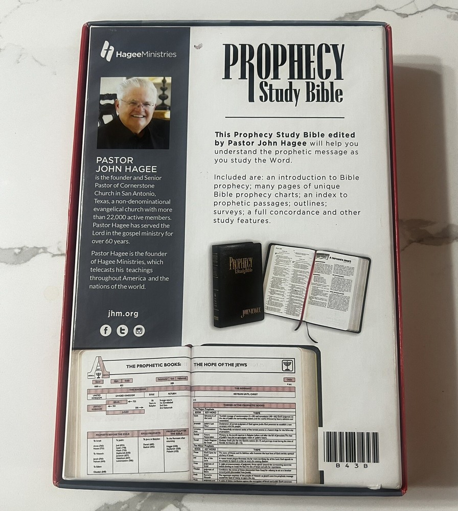 This Bible is absolutely stunning—the leather-bound box adds a luxurious feel, and the NKJV text is crisp and easy to read. John Hagee’s insights on prophecy are eye-opening, making scripture come alive. Perfect for deep study or personal reflection. Arrived quickly and in pristine condition—highly recommend for anyone passionate about biblical prophecy!