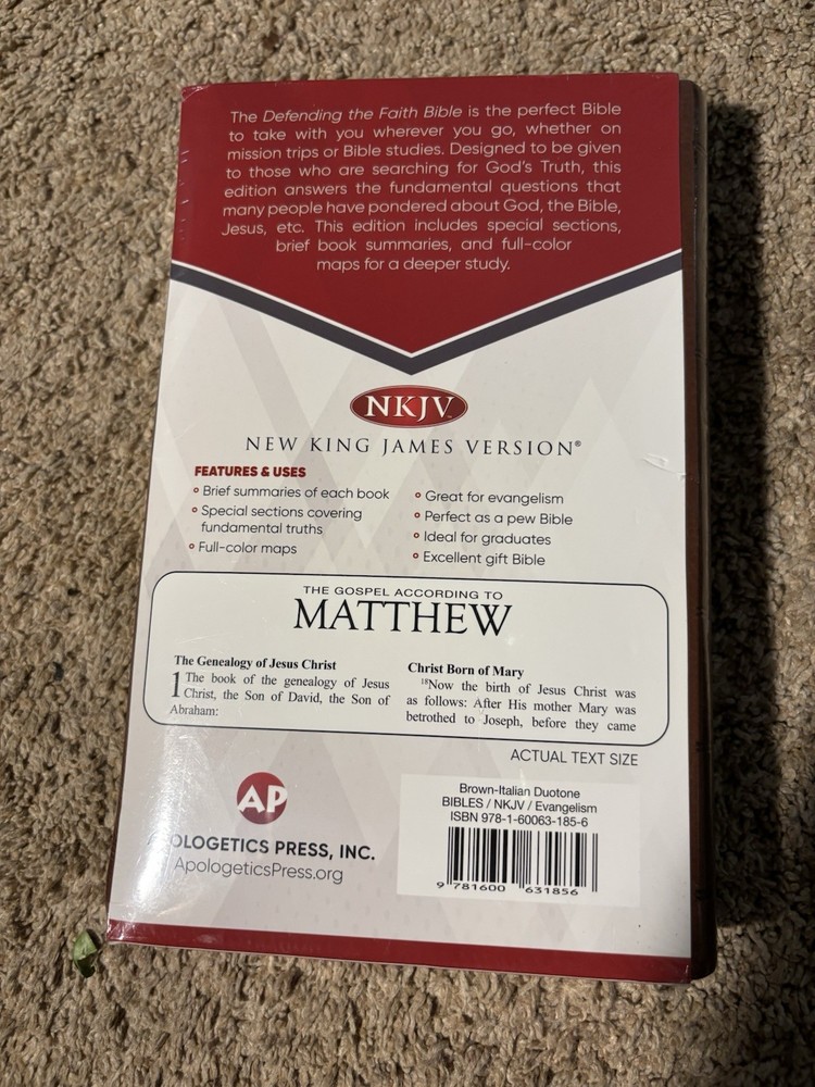 This Bible is a fantastic resource for anyone looking to deepen their faith with solid apologetics! The NKJV text is clear and easy to read, while the added notes and defenses of Christian beliefs make it invaluable. Perfect for study, teaching, or personal growth. Brand new condition and arrived safely with Media Mail—highly recommend!