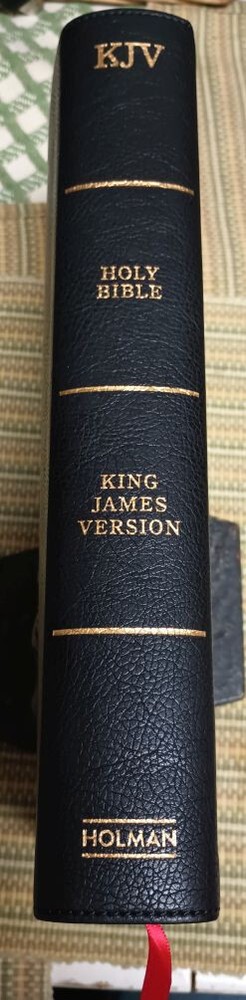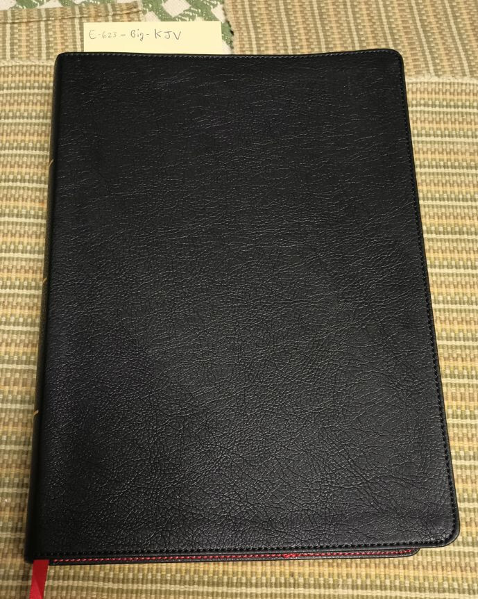 NEW KJV Super Giant Print Reference Bible, Leather Indexed, Red Letter, Pure Cambridge Text, Presentation Page, Cross-References, Full-Color Maps, Easy-to-Read Bible MCM Type by Holman Bible Publishers KJV Super Giant Print Reference Bible, Black LeatherTouch, Indexed, Red Letter, Pure Cambridge Text, Presentation Page, Cross-References, Full-Color Maps, Easy-to-Read Bible MCM Type Imitation Leather – Large Print, May 15, 2020 by Holman Bible Publishers (Editor) 4.5 4.5 out of 5 stars 10 ratings See all formats and editions The KJV Super Giant Print Reference Bible features a super giant, easy-to-read 16-point type that is perfect for devotional reading, personal study, or use at church. The super giant type also makes this Bible an ideal choice for preaching and ministry. FEATURES: Pure Cambridge Edition of the KJV text Durable Smyth-sewn, lay-flat binding Two-column, verse-by-verse text format End-of-paragraph cross-references Topical page headings 16-point type size Words of Christ in red Gilded page edges Ribbon marker Concordance Presentation page for gift-giving Full-color maps 7.0625” x 10.25” page size The KJV Super Giant Print Reference Bible features the authorized Pure Cambridge Edition text of the King James Version (KJV) translation. The KJV is one of the best-selling translations of all time and captures the beauty and majesty of God’s Word for those who love the rich heritage and reverent language of this rendering of the Holy Bible. 2208 pages 2020 Excellent condition: No loose, torn or missing pages, bindings firm and tight. No water damage, mustiness, or odors. No highlighting, notes, underlining, or marks, etc. e-623-big-kjv e-623-big-kjv
