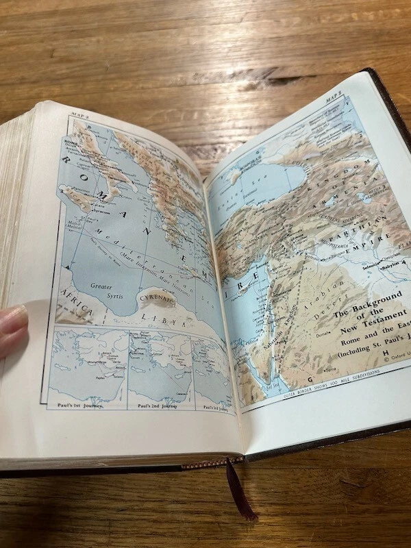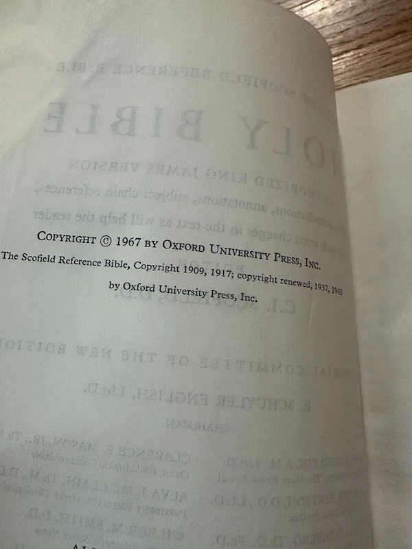 NEW SCOFIELD REFERENCE EDITION King James Version You are viewing a nice pre-owned leather study bible. Brown leather. 9 X 6 inches New Scofield Reference Edition which was published in 1967. I don't know when this one was actually printed. Red Letter edition. Study notes/helps/maps/concordance. Oxford University Press. Overall nice condition. But a few things to note: name engraved on front, handwritten inscription on front free endpaper, and some sparse highlighting in the New Testament. Otherwise clean and tight. Please see all pictures. Please see all the other high quality items that I have up for sale right now!!. Buyer to pay $7 Shipping. (Within the US) Thanks for looking!