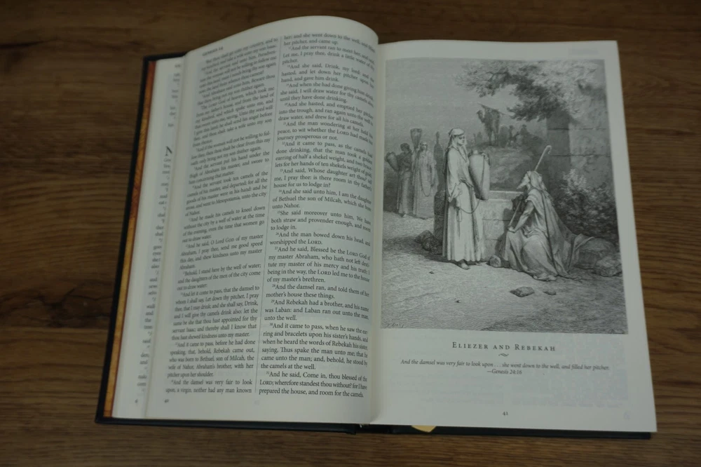 This beautiful leather-bound King James Bible is a true treasure! The Gustave Doré illustrations add stunning detail, making it perfect for study or display. Arrives brand new and sealed—excellent quality with a timeless design. Shipping is reliable, whether domestic or international. A must-have for collectors and believers alike!