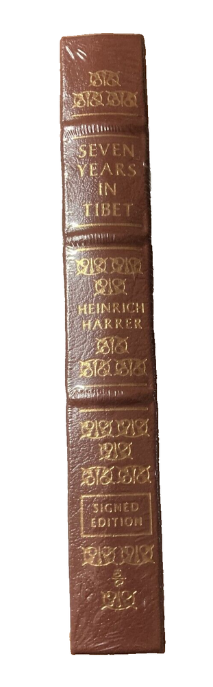 NEW/SEALED! Seven Years in Tibet, Heinrich Harrer, 2x SIGNED w/COA Easton Press By is leather bound and signed TWICE BY HARRER- Still in publisher's original wrapping. A scarce handsome brown full leather Collector's Edition of Harrer's classic book, signed by the author on the signature page in 2004. Originally published in 1953. This book tells of the author's autobiographical experience escaping from a British internment camp in northern India during World War II to the Tibetan capital of Lhasa where he established a strong relationship as a friend and tutor to the young Dalai Lama. Seven years later he was forced to flee Tibet when the Chinese overtook the country. It is his experiences during those seven years that give the story its name. Mr. Harrer was born in 1912 and passed away in 2006 at the age of 93. In 1997 a major motion picture was made based n this book, starring Brad Pitt as Heinrich Harrer and David Thewlis as his companion, Peter Aufschnaiter. Reportedly David Thewlis is banned from ever entering China because of his role in this movie. In fine brown leather with gold gilt cover designs and page edges, moiré silk endpapers and bound-in silk bookmark. Still in the original shrink-wrap and includes the publisher's note card and Certificate of Authenticity from Easton Press. Parrish Books guarantees all signatures as authentic. Very Fine; Sealed in Publisher's Wrap. Seller Inventory EASTON PRESS SIGNED COLLECTORS EDITION OR: EASTON PRESS DOUBLE SIGNED BOOK & COA OR: PRESIDENTIAL EDITIONS ABSOLUTELY MINT! ALL SMELL NEW (!)- PURCHASED AT AUCTION OF LIFETIME RARE BOOK COLLECTOR FROM GROSSE POINTE, MICHIGAN. SPECIAL NOTE ON THE PUBLISHER SEALED EDITIONS: My understanding is that this avid Grosse Pointe, Michigan Book Collector, purchased ALL his books upon release by Easton Press ASAP . Therefor the odds of his/these few PUBLISHER SEALED BOOKS : Heinrich Harrer’s, Seven Years in Tibet, John Updike’s, Run Rabbit & Frank McCourt’s Pulitzer Prize Winning, Angela’s Ashes - are probably in the first 20 through 200 of these limited signed/COA originals. This would also apply to the Franklin Press Limited Signed/COA copy of John Irving’s, A Prayer for Owen Meany. FOR ME- THESE WERE THE BUY OF LIFETIME FOR MY COLLECTION- I’VE HAD THEM LONG ENOUGH AND AM DOWNSIZING- THEY ARE UP FOR SALE NOW. EACH BOOK IS EXACT AS DESCRIBED- SOME ARE STILL BRAND NEW AND SEALED AFTER 25+ YEARS! ALL BOOKS WERE STORED PLASTIC SEALED- IN DARK LIBRARY- ALL ARE –PURE MINT CONDITION OR NEW & STILL PUBLISHER SEALED! MANY OF THE C.O.A. VOLUMES WERE PRINTED IN VERY SMALL BATCHES- EXAMPLE: KURT VONNEGUT’S SLAUGHTERHOUSE-5, ONLY 850 WERE DOUBLE SIGNED BY VONNEGUT ON THE EASTON PRESS SPECIAL FACE PLATE AND ON THE DATED CERTIFICATE . ALL ARE WORLD CLASS LEATHER BOUND USING PREMIUM ACID FREE LINEN PAPER, REAL GOLD EMBOSSED & 100% ORIGINAL HAND SIGNED EDITIONS. ALL BOOKS WERE PRICED NEAR OR BELOW EBAY PRICES AT TIME OF POSTING. ORIGINAL PUBLISHED SEALED BOOKS BRING A PREMIUM PRICE. Our eBay Items are “BUY IT NOW PRICED” - No offers are accepted- If we submit an offer to interested Watchers all will be minimum allowed by eBay, with counter offers Turned Off. SHIPPING via MEDIA MAIL ONLY. NO COMBINED SHIPPING DUE TO THE RARITY & COST OF THESE BOOKS. EACH WILL BE SHIPPED INDIVIDUALLY- AT THESE VERY FAIR PRICES- AND LOW MEDIA MAIL SHIPPING COST’S- THEY REMAIN AN EXCELLENT INVESTMENT AND VALUE TO YOU- THE NEXT OWNERS- EACH BOOK WILL SHIPPED IN THIS MANNER: Ø BOOK IS PLASTIC SEALED Ø BOOK IS BUBBLE WRAPPED SECURED w/LOW TACK BLUE PAINTERS TAPE. Ø EACH BOOK SHIPPED IN NEW THICK CARDBOARD SIDE-OPEN FLAP BOXES. Ø EACH BOX MEASURES: 12X10X3 INCHES Ø SHIPPING WEIGHT 2# 4oz 12x10X3