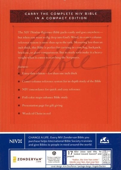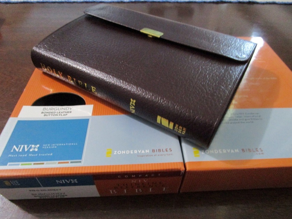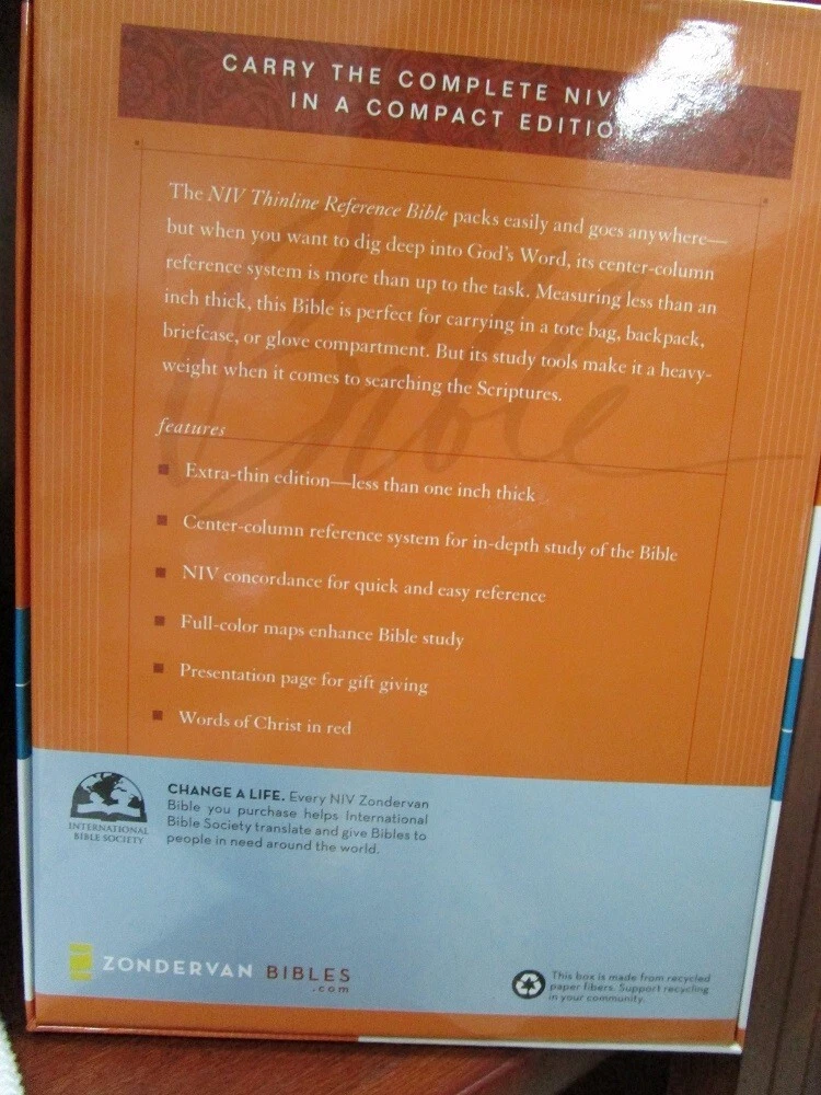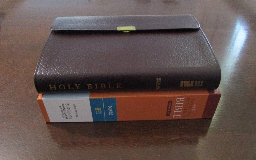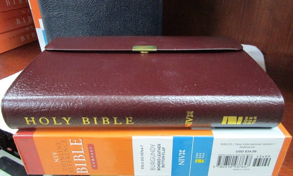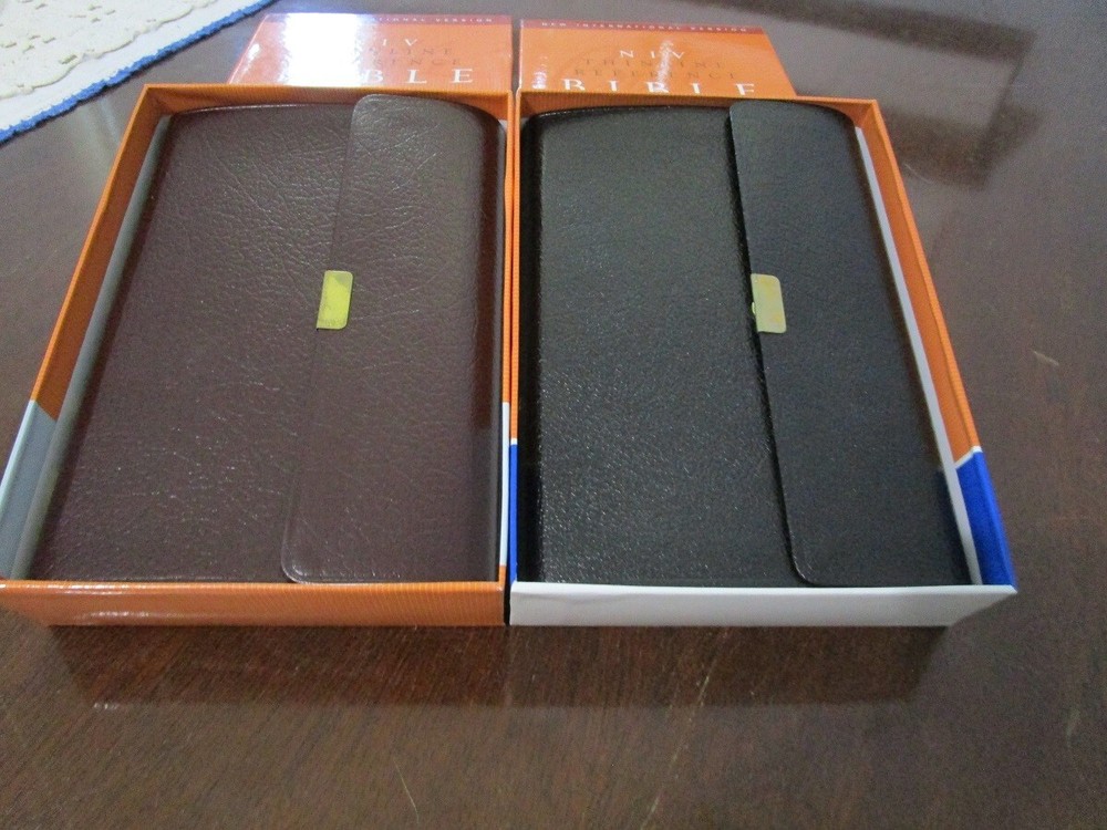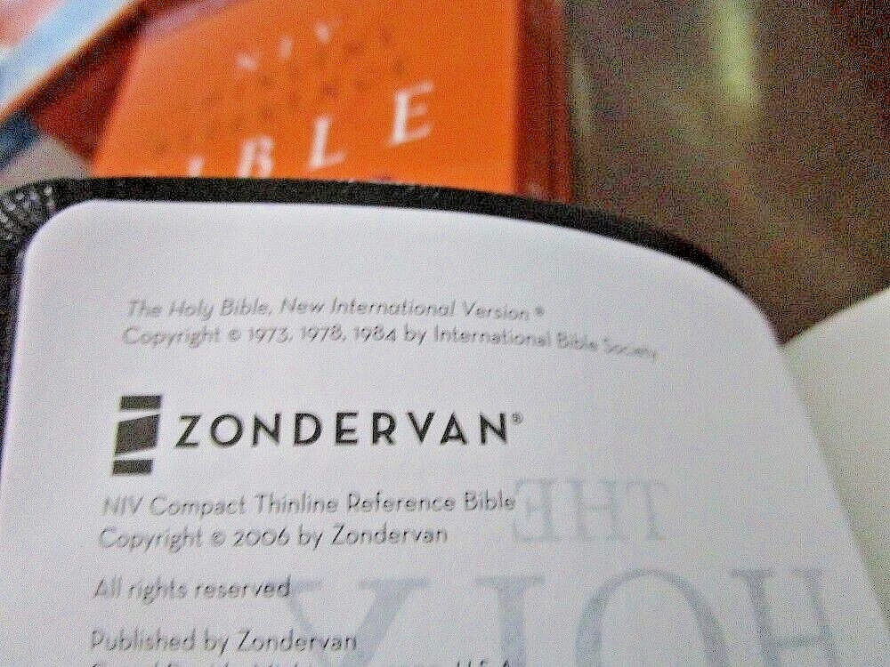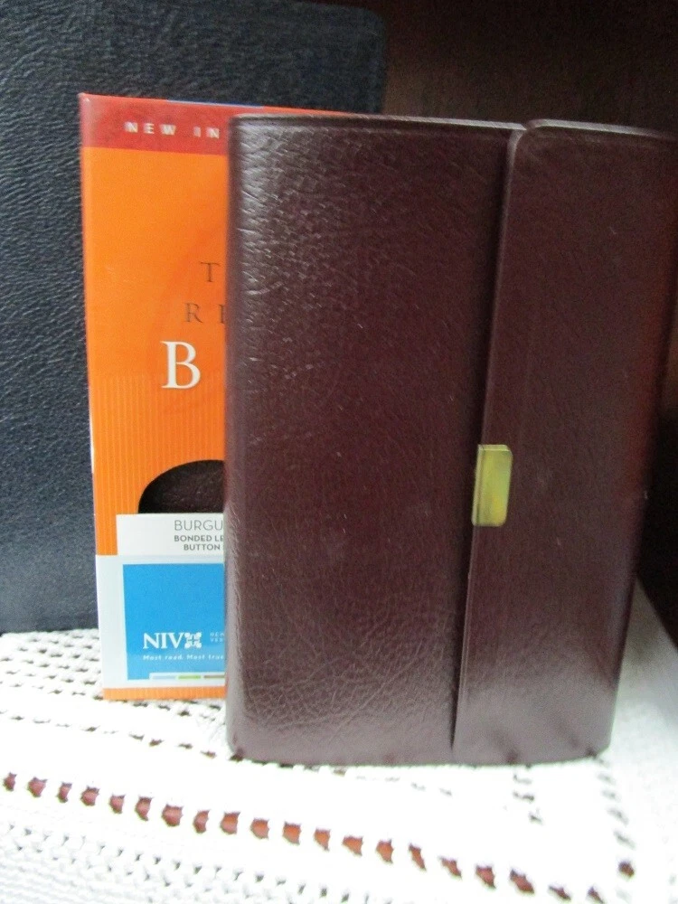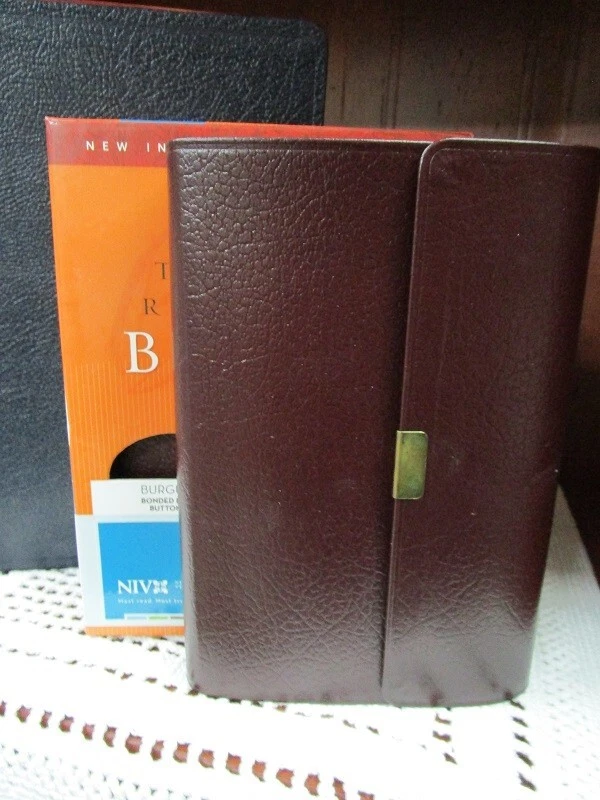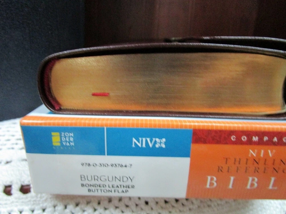** NIV 1984 VERSION ** Brand NEW RARE - Out of Print NIV 1984 Compact Reference Bible Burgundy BONDED Leather Button Flap - Snap Closure Snap closure may be tiny bit tarnished most are perfect. Been in case a long time!! SMALL PRINT - 6pt font RED Letter Words of Christ in RED Concordance Color Maps Ribbon Marker COMPACT BIBLE BRAND NEW NIV 1984 Bible COMPACT thinline reference bible Published 2007 1984 NIV Version Ships PRIORITY MAIL w/Tracking! Ships FREE **NIV published from 1984 to 2010 are NIV84 VERSION**