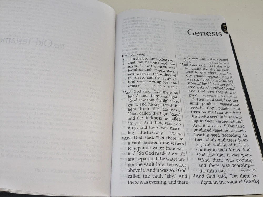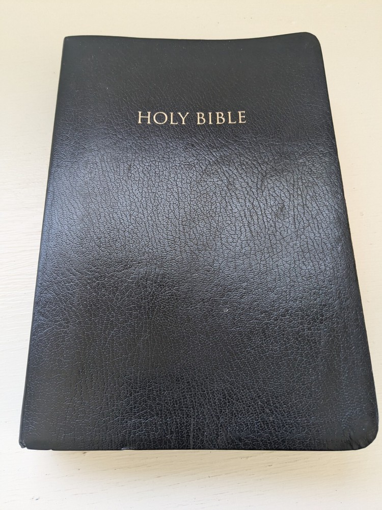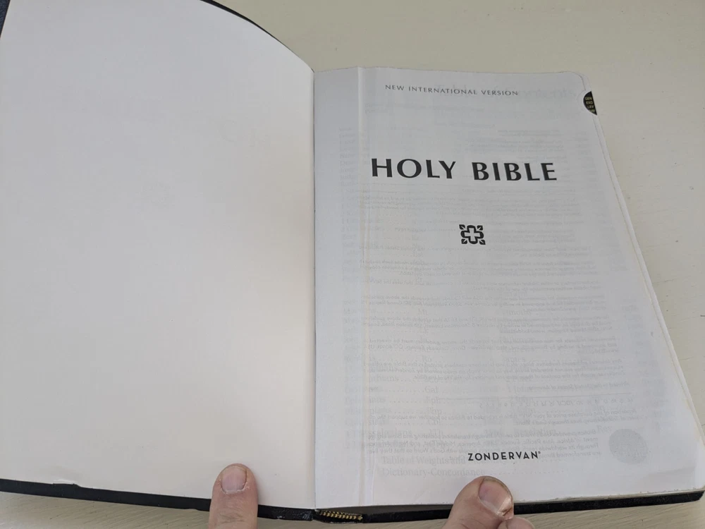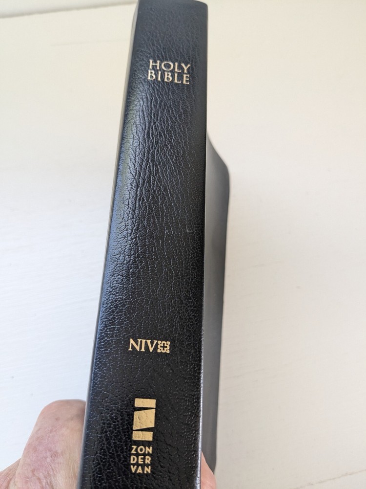 Bible measures 6 and 1/2 in x 9 and 1/2 in. Red letter edition. Thumb index. Bible is in excellent condition with no marks inside...