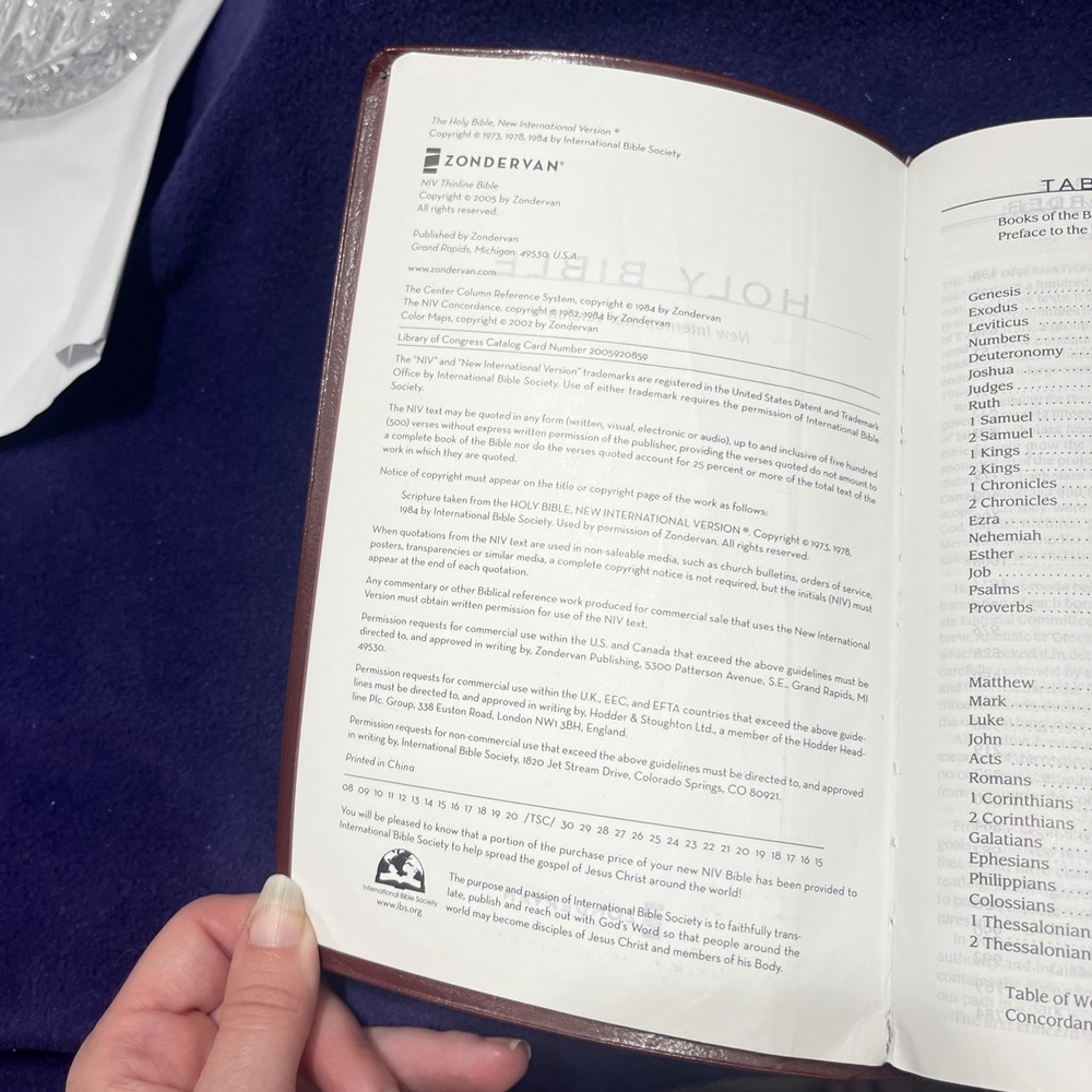 This NIV Holy Bible Bonded Leather 2005 Zondervan Thinline Reference Maps Burgandy is a perfect addition to your collection. With its thin design, it is easy to carry around and read on the go. The bonded leather cover gives it a classic feel, while the center reference and page finder make it easy to find your favorite passages. The Bible features red lettering for important words and includes maps for reference. Published in 2005 by Zondervan Staff, this nonfiction book is intended for young adults and adults. Its vintage feel and English language make it a great choice for anyone looking for a classic Bible. Has some highlighting in it.