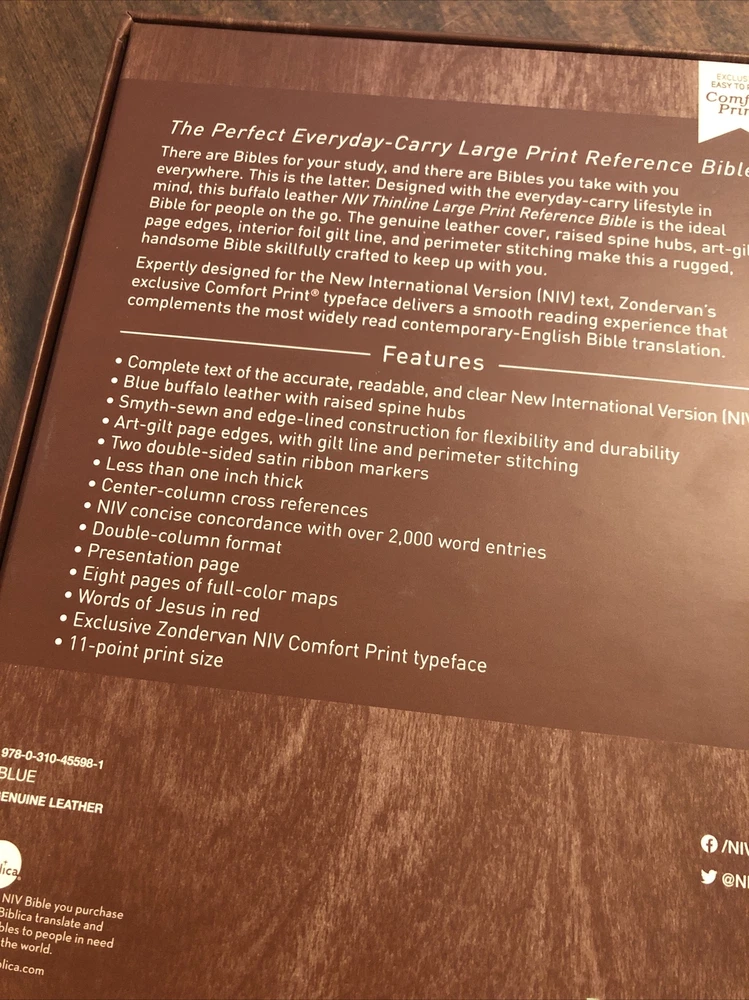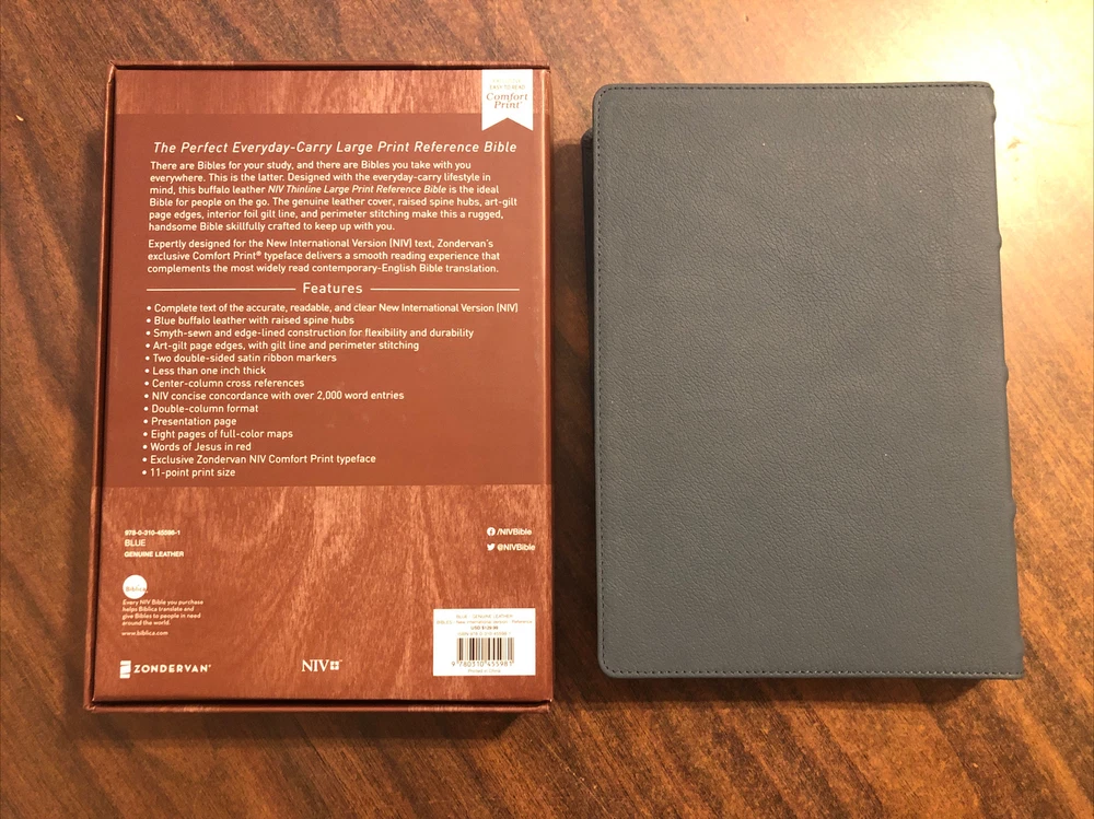 Niv 2011, comfort print Blue Genuine Leather Edition, Buffalo 11 Pt Text Measures appx 9.7 x 6.7 x 1.25 Shipping will combine automatically based on weight on any items purchased at the same time, just add any items to your cart and checkout as one purchase! No returns