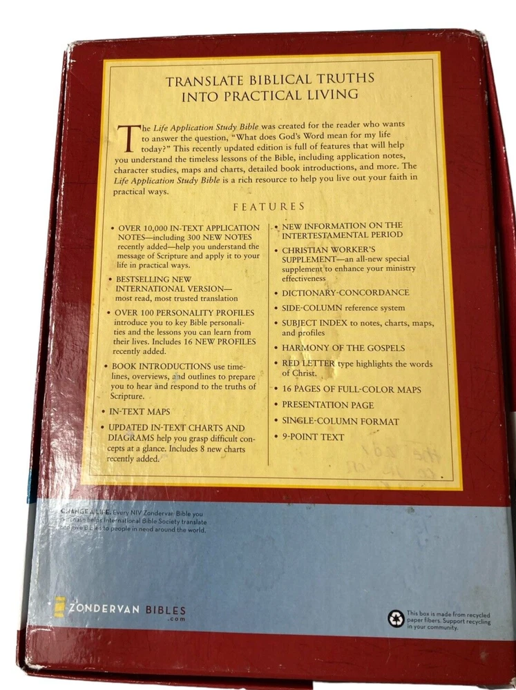 This Bible is a beautiful and practical choice for deep study! The Italian Duo-Tone Blue cover feels sturdy yet elegant, and the Life Application notes make Scripture come alive with real-world insights. The NIV translation is clear and easy to understand, while the study features help apply biblical truths to daily life. Even though it's from 2005, the condition is fantastic—like a well-loved treasure. Perfect for personal devotion or gifting!