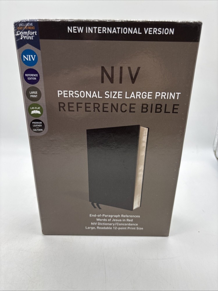 Let Scripture explain Scripture Featuring a generous 12-point print size set in the exclusive Zondervan NIV Comfort Print(R) typeface and an end-of-paragraph reference system, the NIV Personal Size Reference Bible provides a clear, smooth, and easy reading experience for readers of all ages. This large print reference Bible is ideal for anyone looking for a reference Bible that is gentle on the eyes, yet easy to carry. Expertly designed specifically to be used for the New International Version (NIV) text, Comfort Print offers an easier reading experience that complements the most widely read modern-English Bible translation. Features: Complete text of the accurate, readable, and clear New International Version (NIV) End-of-paragraph references make cross-referencing verses easy NIV dictionary/concordance Eight pages of full-color maps for helpful reference Words of Christ in red Two ribbon markers Premium calfskin leather cover lays flat when open Exclusive Zondervan NIV Comfort Print(R) typeface 12-point print size, Let Scripture explain Scripture Featuring a generous 12-point print size set in the exclusive Zondervan NIV Comfort Print® typeface and an end-of-paragraph reference system, the NIV Personal Size Reference Bible provides a clear, smooth, and easy reading experience for readers of all ages. This large print reference Bible is ideal for anyone looking for a reference Bible that is gentle on the eyes, yet easy to carry. Expertly designed specifically to be used for the New International Version (NIV) text, Comfort Print offers an easier reading experience that complements the most widely read modern-English Bible translation. Features: Complete text of the accurate, readable, and clear New International Version (NIV) End-of-paragraph references make cross-referencing verses easy NIV dictionary/concordance Eight pages of full-color maps for helpful reference Words of Christ in red Two ribbon markers Premium calfskin leather cover lays flat when open Exclusive Zondervan NIV Comfort Print® typeface 12-point print size, Featuring a generous print size, a new, exclusive Zondervan NIV Comfort Print typeface, and an end-of-paragraph reference system, this Bible provides a clear, smooth and easy reading experience for readers of all ages. |