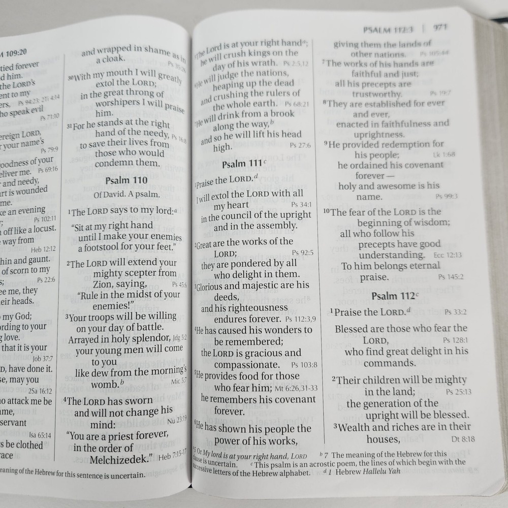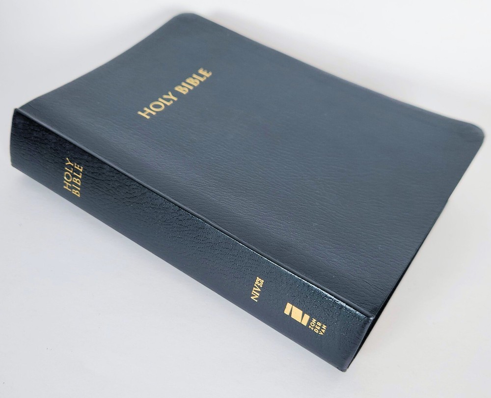 NIV Reference Bible with Giant Print and Red Letter Printing of the words of Jesus Black Leather Look Cover Zondervan 2011 - Flexible Cover About 9.5" x 6.5" In very good condition, cover shows little wear, pages are clean and a couple pages have creasing.