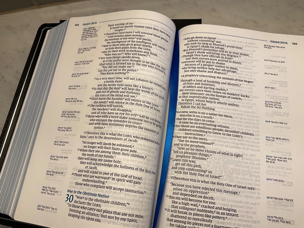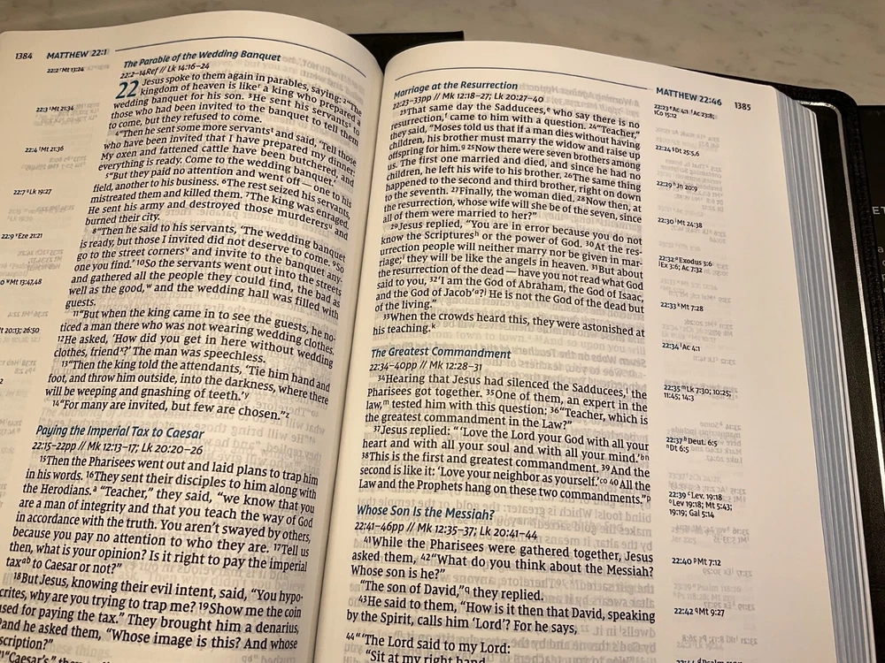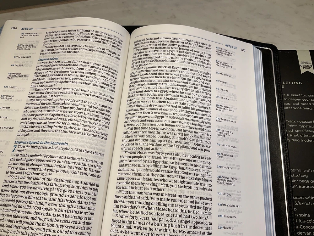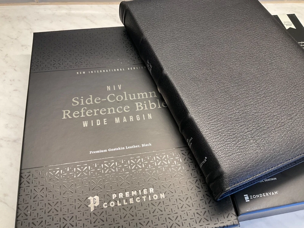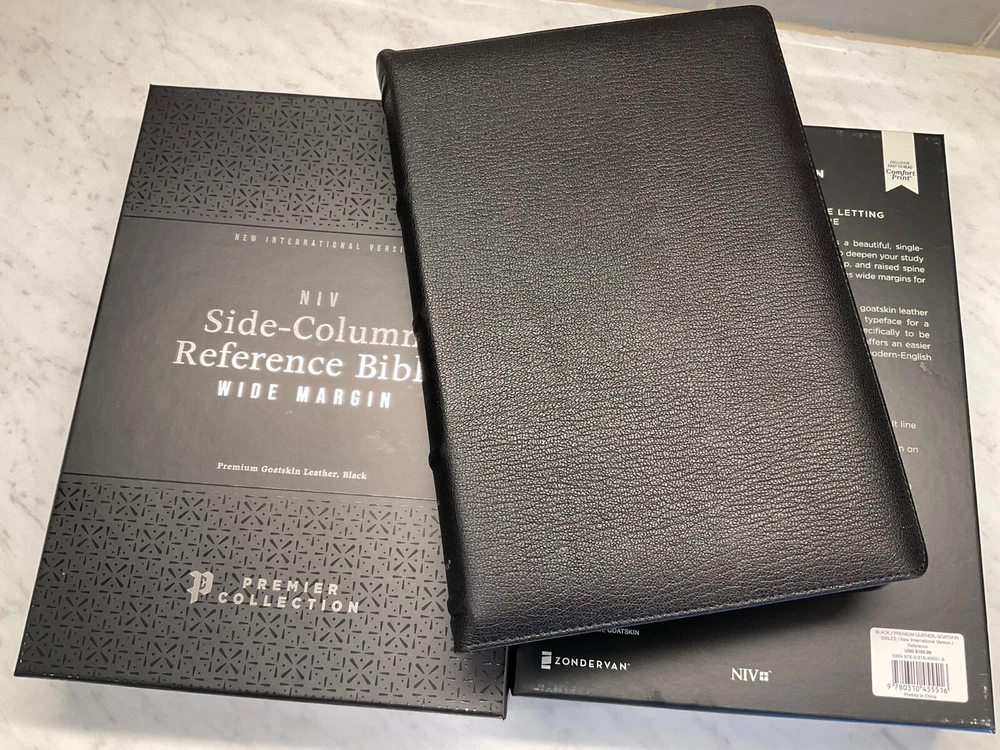This premium NIV Bible is a dream for serious study—luxurious goatskin leather, wide margins for notes, and clear, readable text. The side-column references make cross-checking effortless, while the sewn binding and three ribbon markers ensure durability and convenience. Perfect for deep reflection and personal study, it’s worth every penny for its craftsmanship and functionality.