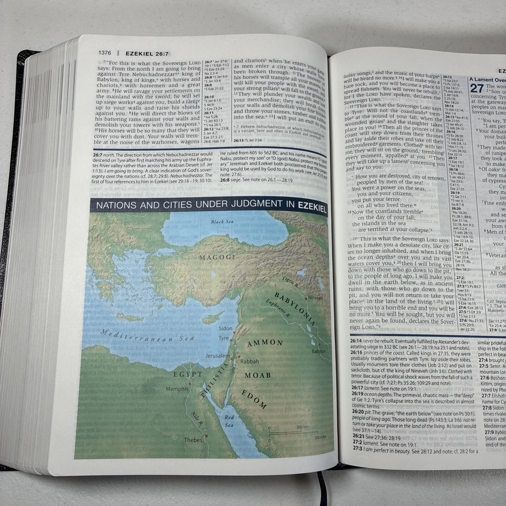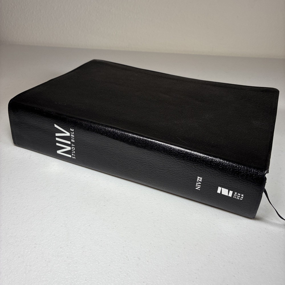 NIV Study Holy Bible Large Print Bonded Leather Black, Red Letter Ed Zondervan Please see photos for overall condition. The Bible text has not been highlighted or marked.