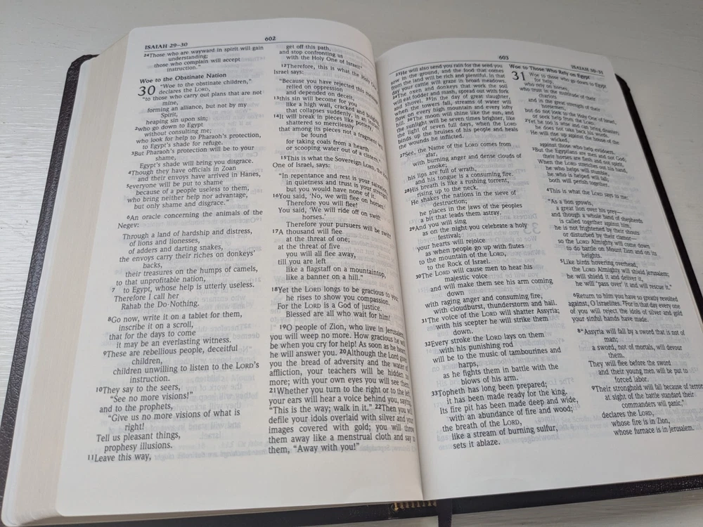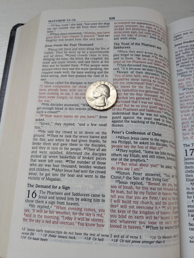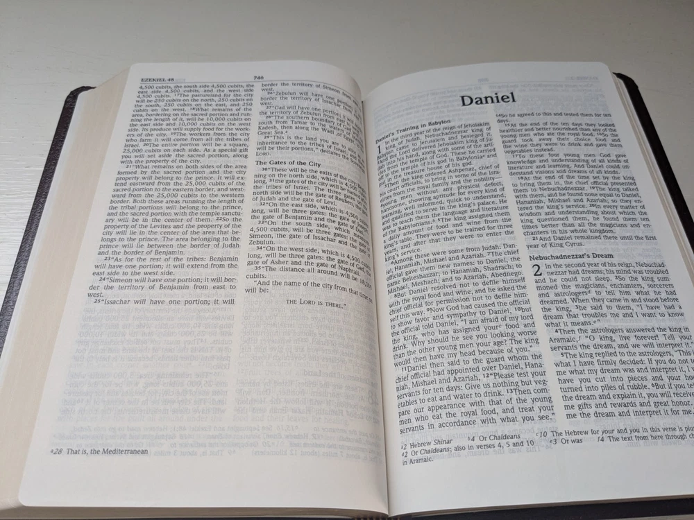 Prompt response with question regarding Bible. Items was just as described and a great price for the condition.Thank you for the prompt shipping, received sooner than I was expecting. Careful packaging was much appreciated. This was just what I was looking for. Perfect Bible for travel and everyday use. Everything you did to get this to me in a timely manner was most appreciated.