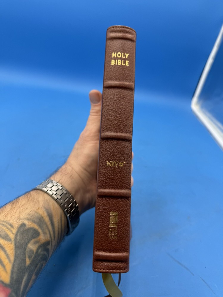 This NIV Thinline Reference Bible is a must-have for any Bible enthusiast. With its beautiful brown genuine buffalo leather cover, this Bible is not only stylish but also durable. The Bible is written in English and contains various aspects such as the author, publisher, topic, and language. The Bible is perfect for anyone who wants to study the Bible in depth. It includes detailed information on the author, publisher, and topic of the Bible. The Bible is categorized under Books & Magazines and Books, making it easy to find and purchase. Get your hands on this amazing Bible today!