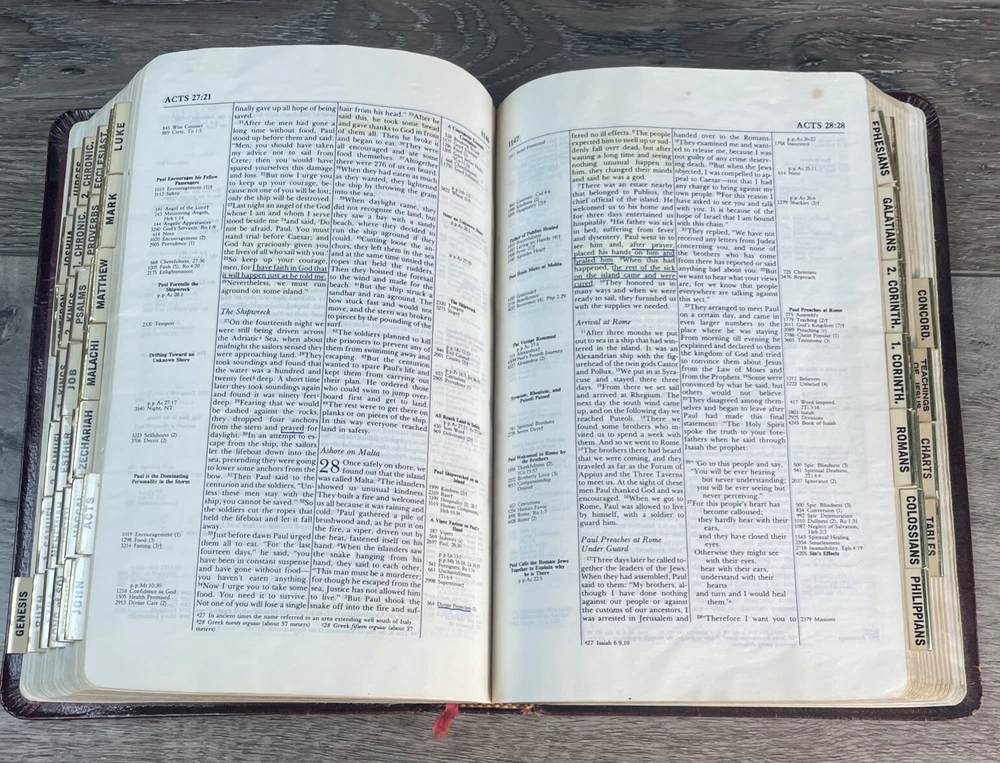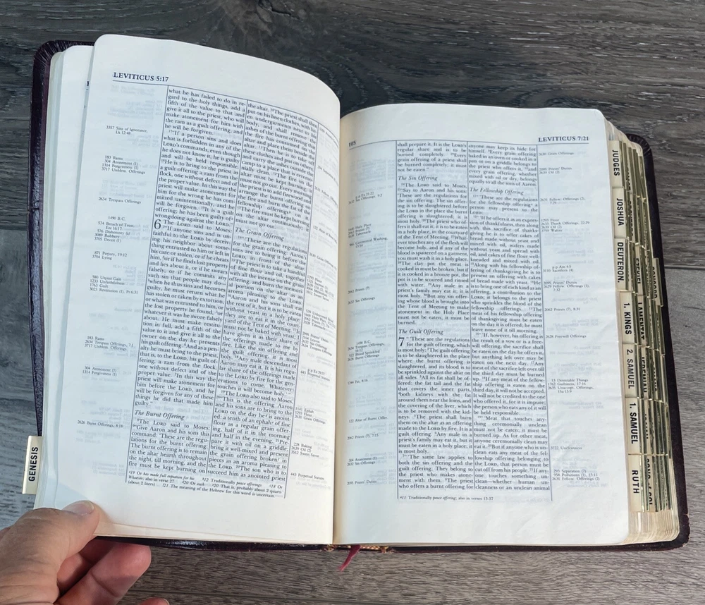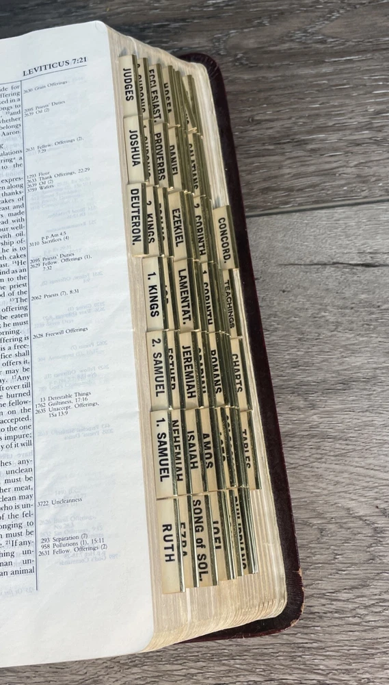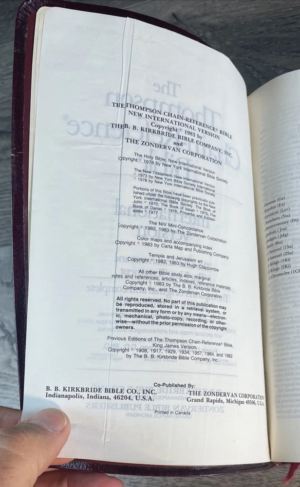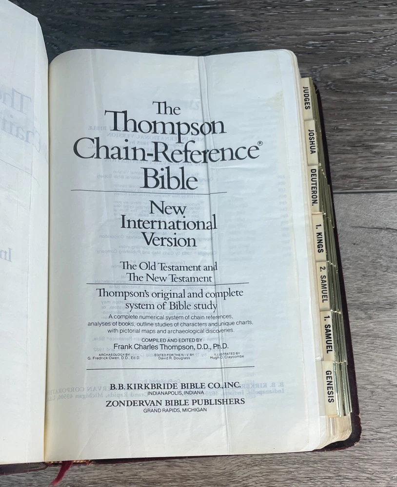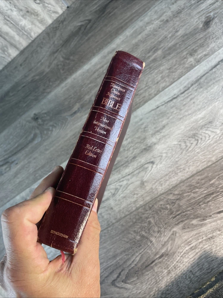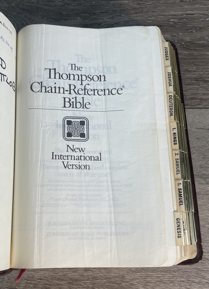 This is a genuine leather bound Thompson Chain Reference Bible from 1983. The book features red lettering and is published by Kirkbride Bible Company, Incorporated, B.B. It is written in English and is perfect for those interested in spirituality and religious topics. The book is purse size and contains features such as a leather bound cover. The author of this book is God and the genre is spirituality and religious & spiritual. The book title is Thompson Chain Reference Bible and it is published in the Books & Magazines category. Thanks. Watch for Sales Events!