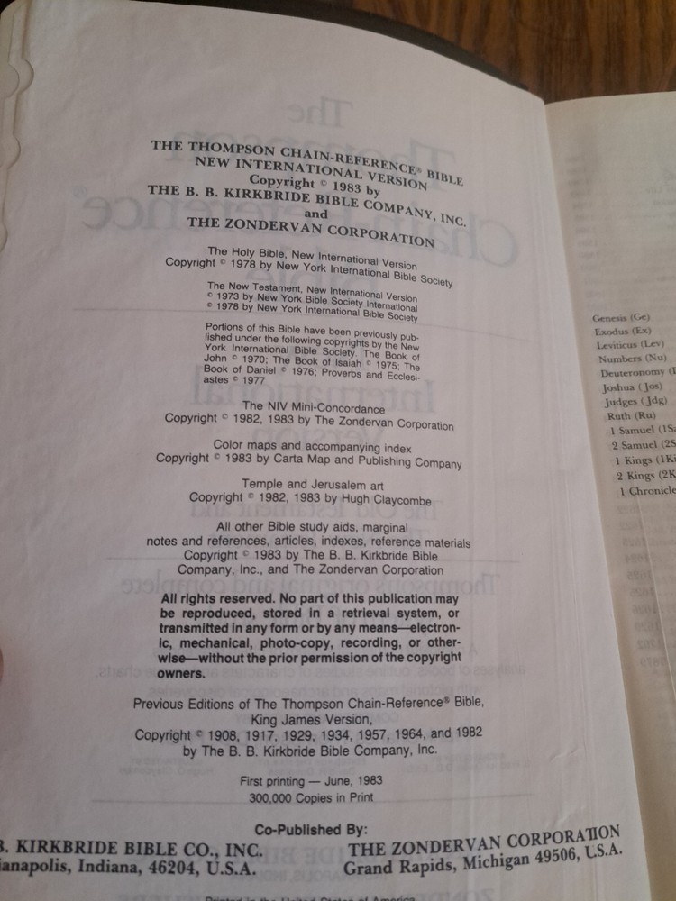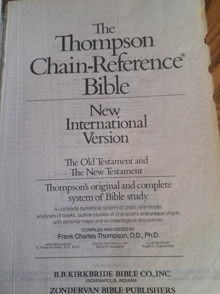 NIV True 1st Ed. 1983 Thompson Chain Reference Bible - Leather Fair shape, no names or doodles noted. SHIPS FAST