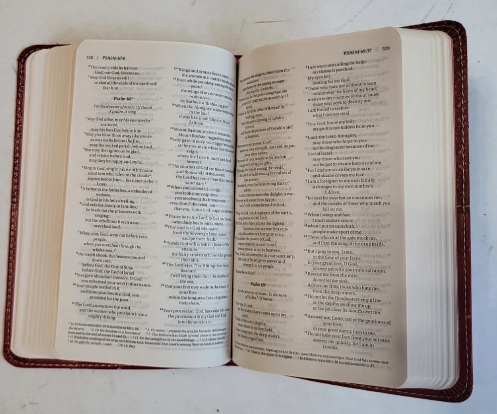 This NIV Thinline Bible is in fantastic condition—like new! The leathersoft cover feels great, and the text is easy to read. Lightweight and perfect for carrying anywhere. Fast shipping and well-packaged. Highly recommend!