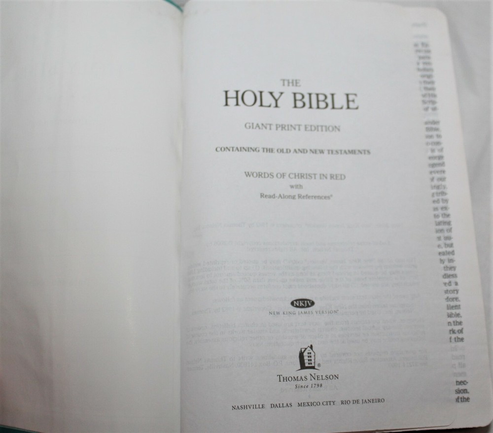 NKJV BIBLE Giant Print Red Letter Nelson Aqua Blue Read Along Reference ©2006