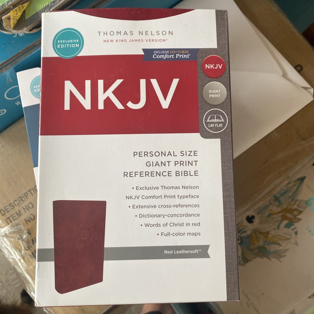 NKJV Bible: New King James Version Red Leather Soft, GIANT PRINT Reference Bible...
