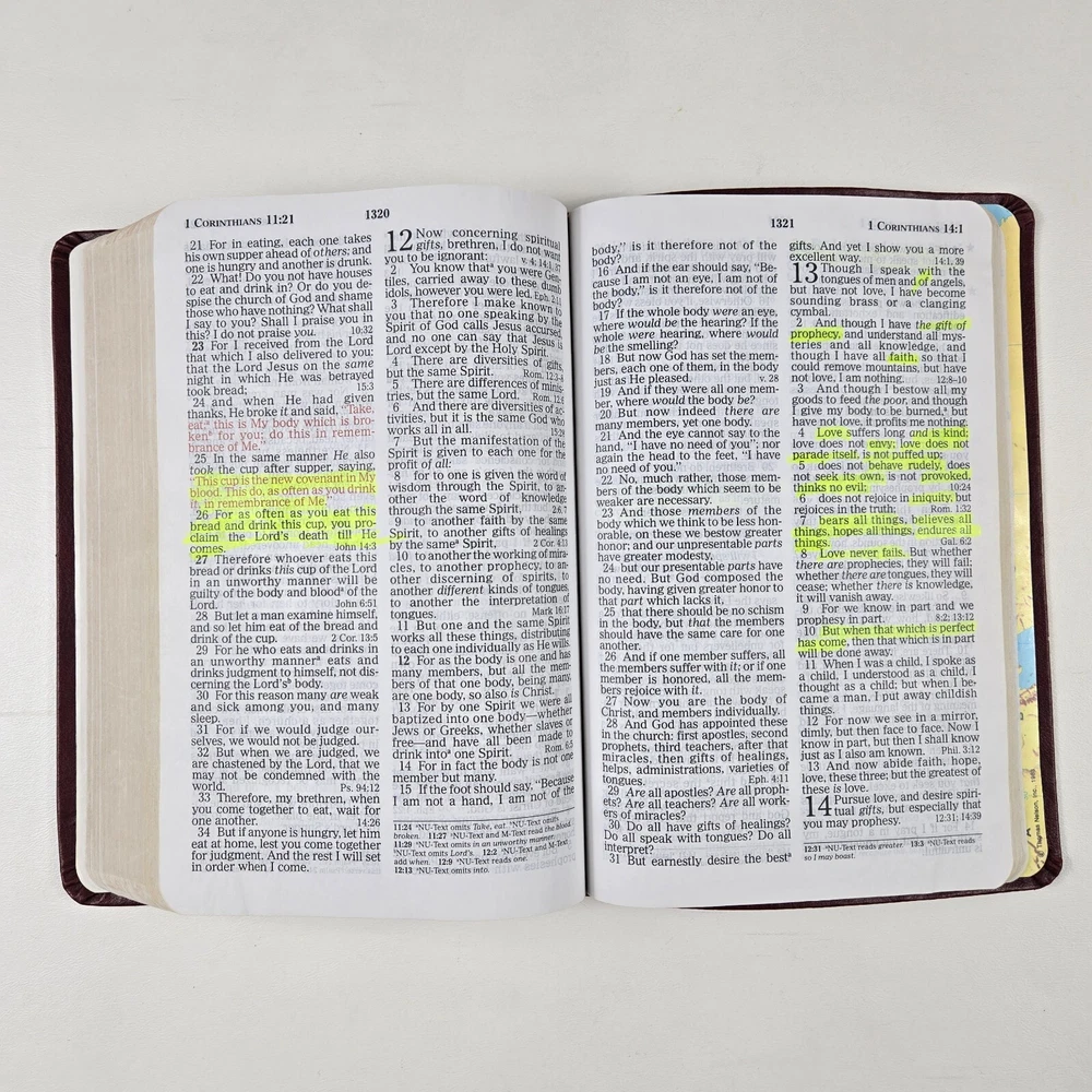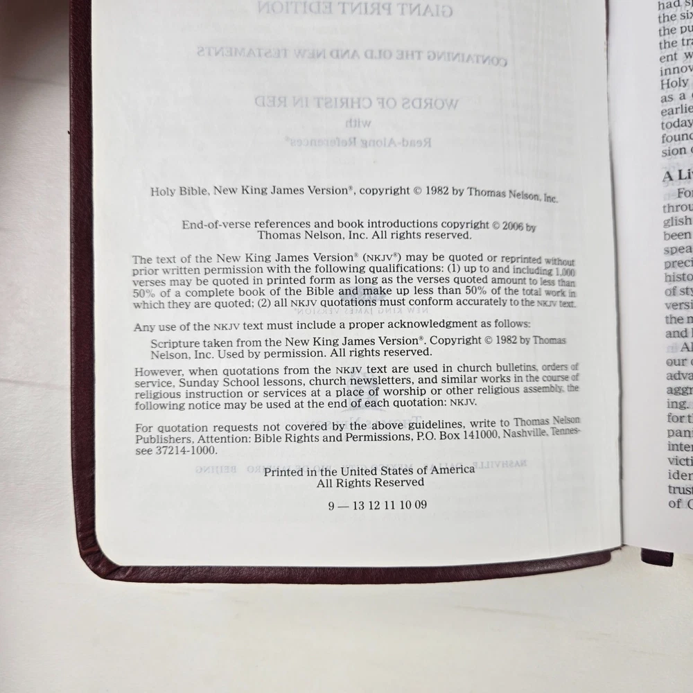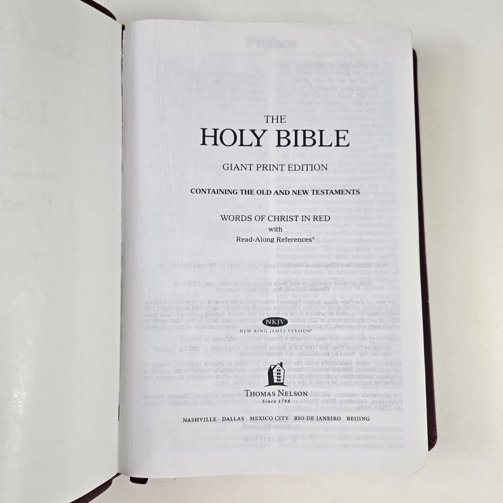 NKJV Giant Print Bible Burgandy Softcover Red Letter References Thomas Nelson There is a small amount of highlighting in the bible. The bible has minor signs of use and is in good condition. If you send a message or make an offer on an item, please allow up to 24 hours for a response. If an order is placed on Friday, Saturday, or Sunday, it will be shipped on Monday (unless it is a holiday). Thank you in advance for your patience! If you have a moment, please check out the other items available in my store! Thanks for supporting a small business!