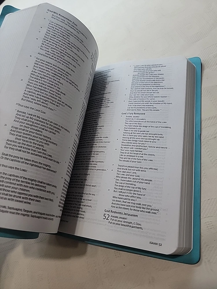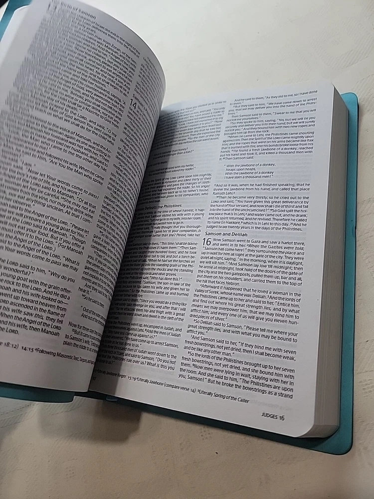 This NKJV Bible is a fantastic find—large print makes reading effortless, and the purple LeatherTouch cover feels premium yet durable. Perfect size for carrying around, and the indexed tabs help navigate quickly. Even as pre-owned, it’s in excellent condition, just as described. A great value for a high-quality Bible!