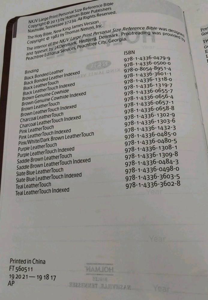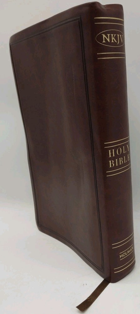 NKJV Large Print Personal Size Reference Holy Bible Brown Leather Touch Holman Clean text, light wear to edges. some highlighting throughout text. Ships next business day....