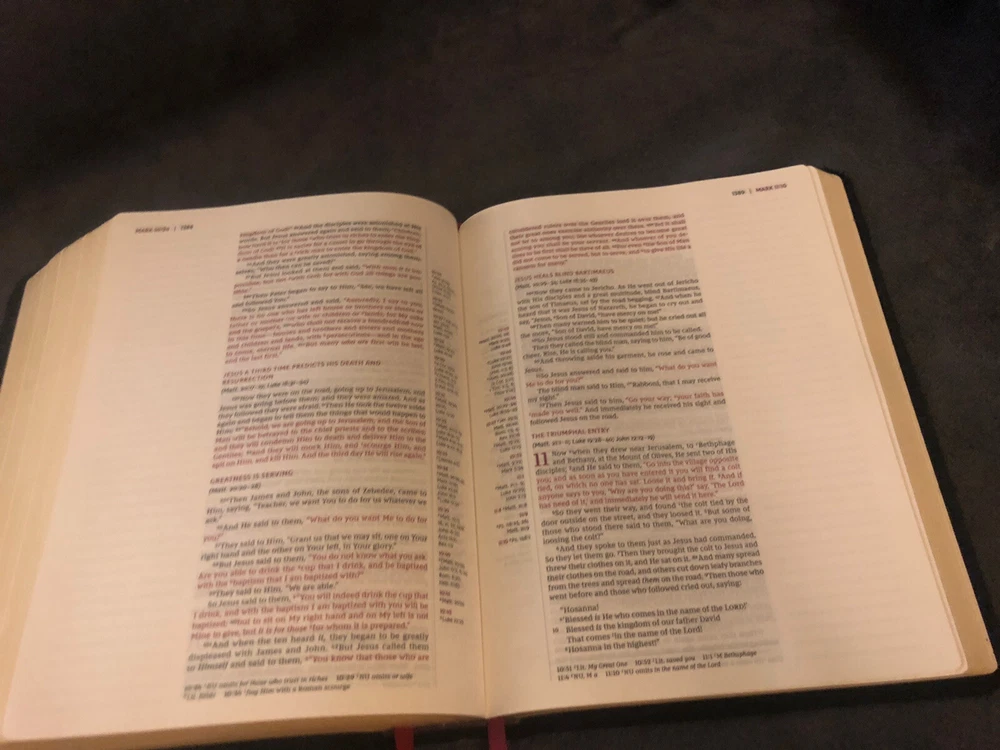 Just received this beautiful, buttery-soft leather bound Bible. Communication with Seller was great, as I had a request that the Seller fulfilled. Packaged nicely, so the Bible was not damaged. All buyers can confidently purchase with this Seller *****