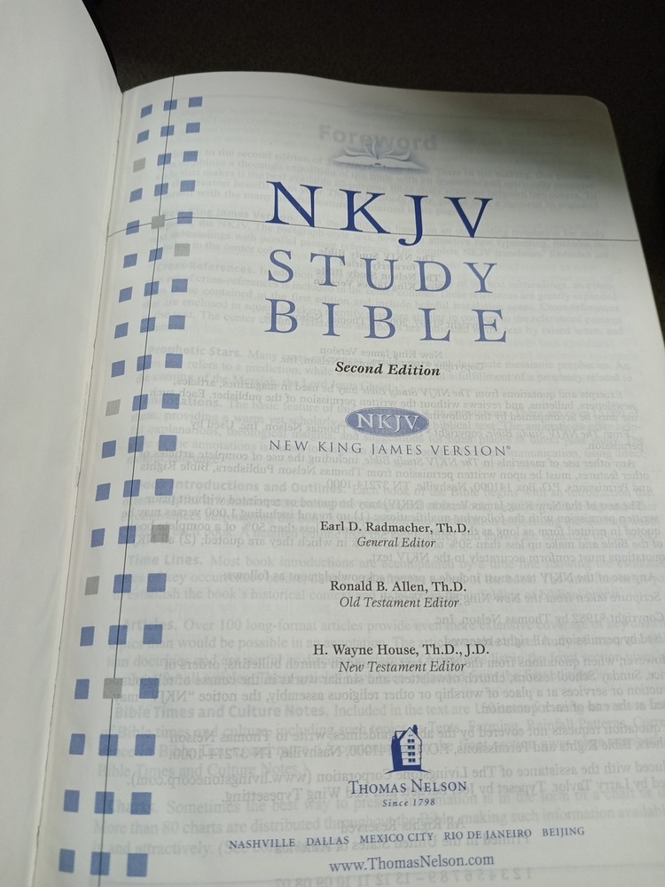 | Synopsis | The NKJV Study Bible, Second Edition is the most comprehensive study Bible available It has the most complete study system for pastors, teachers, or students who desire accurate study in God's Word. Using the trusted New King James Version, The NKJV Study Bible has "the mind of a scholar and the heart of a pastor." Thomas Nelson's skilled team of scholars has produced the study system to reach for when accurate study in God's Word is the goal. Features include: More than 15,000 verse-by-verse study notes 150 Bible times and culture notes 114 articles on key Bible doctrines 350 word studies with Strong's numbers "Christ in the Scriptures" feature Topical index Deluxe Nelson concordance Full-color maps 8.5-point type size Part of the Signature Series line of Thomas Nelson Bibles NKJV Study Bibles sold to date: More than 1.3 million The New King James Version(R) - More than 60 million copies sold, The NKJV Study Bible, Second Edition is the most comprehensive study Bible available. It has the most complete study system for pastors, teachers, or students who desire accurate study in God's Word., The NKJV Study Bible, Second Edition is the most comprehensive study Bible available! It has the most complete study system for pastors, teachers, or students who desire accurate study in God's Word. Using the trusted New King James Version, The NKJV Study Bible has "the mind of a scholar and the heart of a pastor." Thomas Nelson's skilled team of scholars has produced the study system to reach for when accurate study in God's Word is the goal. Features include: More than 15,000 verse-by-verse study notes 150 Bible times and culture notes 114 articles on key Bible doctrines 350 word studies with Strong's numbers "Christ in the Scriptures" feature Topical index Deluxe Nelson concordance Full-color maps 8.5-point type size Part of the Signature Series line of Thomas Nelson Bibles NKJV Study Bibles sold to date: More than 1.3 million The New King James Version® - More than 60 million copies sold |